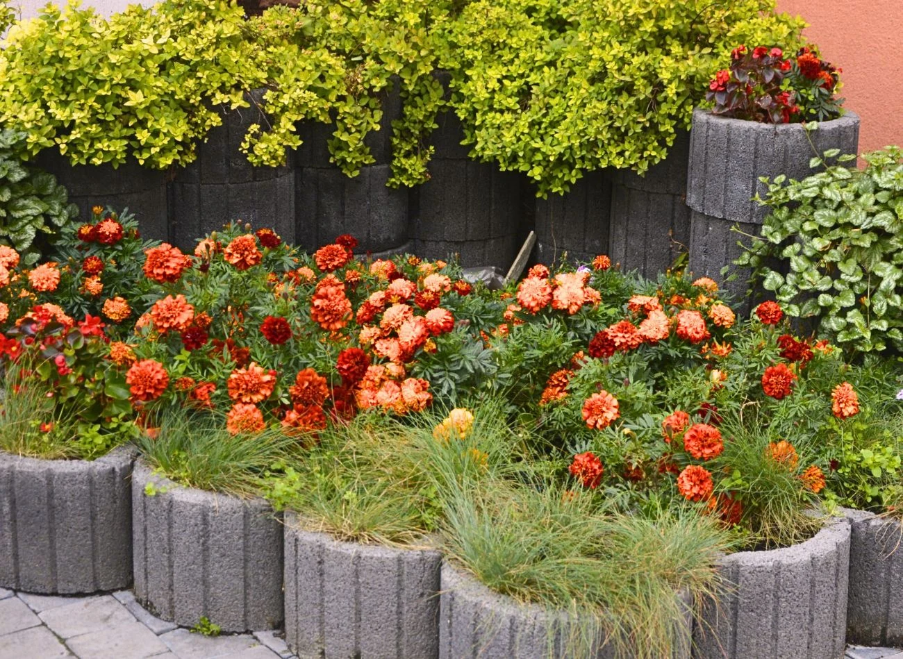 - donice ustawione w rzędzie w formie nowoczesnego murka,