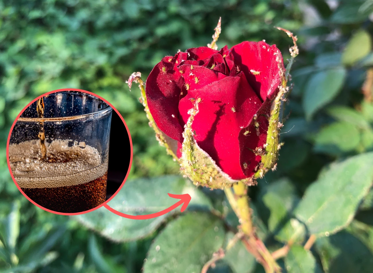 Napój typu cola rozcieńcz z wodą w proporcji 1:1. Przelej do butelki ze spryskiwaczem i obficie nanieś na szkodniki żerujące na różach. Pod wpływem działania coli mszyce szybko spadną z krzewu i przestaną być problemem.