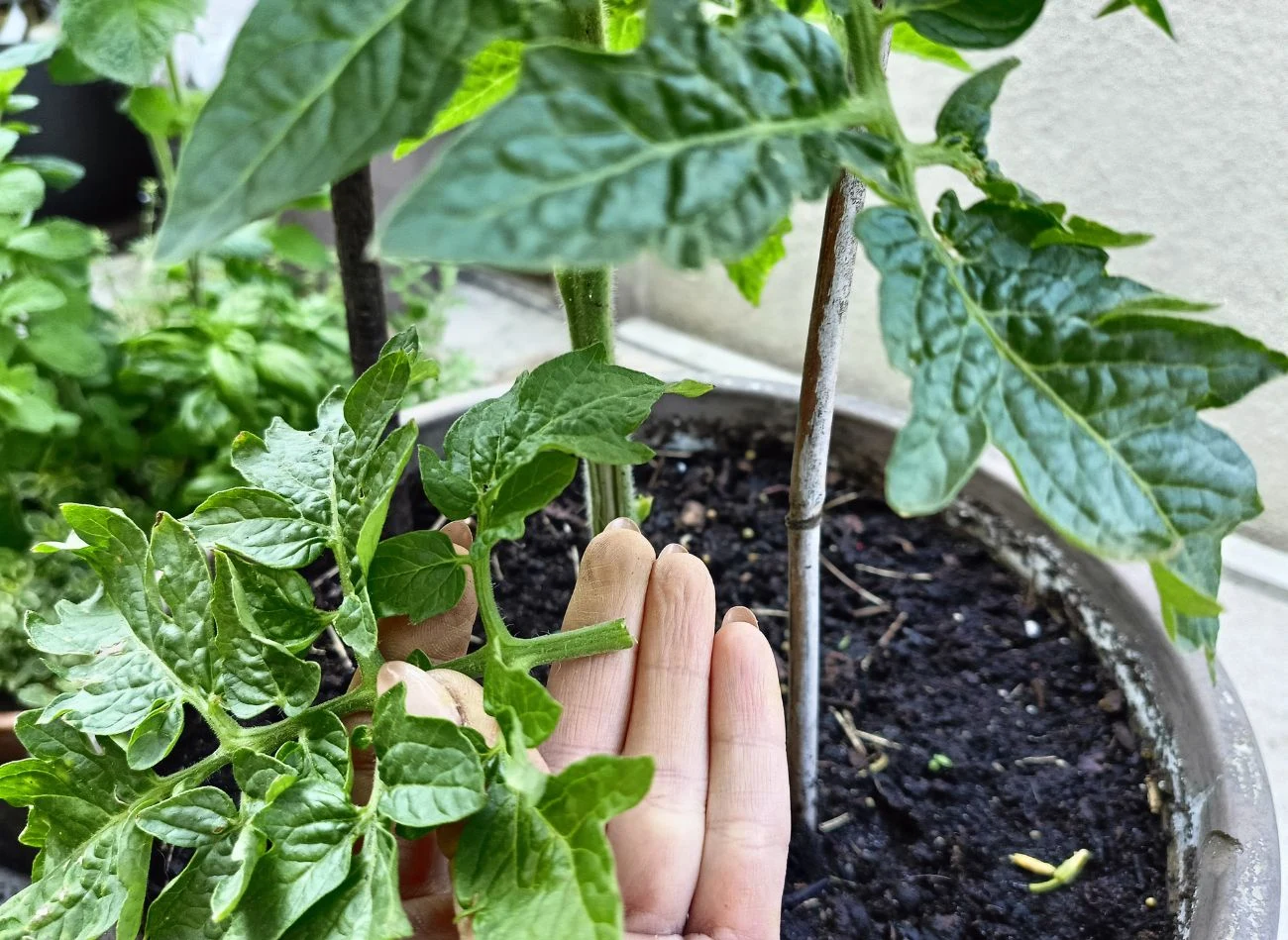 Zwykle rozpoczynam oczyszczanie krzaczków, gdy zauważę pierwsze wykształcone grona owoców. Pędy wyrastające z kątów liściowych usuwam od razu, gdy tylko mogę uchwycić je palcami. Jakich liści pomidorów nie obrywać? Tych, które rosną bezpośrednio pod gronami oraz nad nimi. Zawsze zostawiam 2-3 liście poniżej oraz 1 powyżej grona – to złota zasada, której należy przestrzegać, ponieważ te części zielone transportują składniki pokarmowe i odżywiają owoce. Bez nich twoje pomidory będą mizerne i stracą swój wyjątkowy smak.
