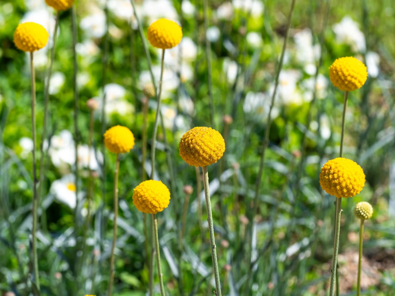 - Kraspedia kulista – złote kule na rabacie