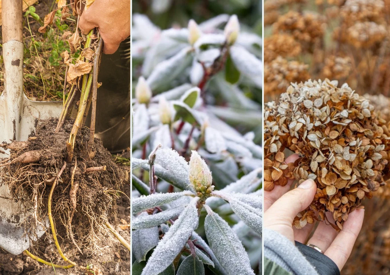 Oprócz sadzenia cebuli roślin niektóre z nich musimy także wykopać. Należy je usunąć wraz ze wszystkimi kłączami oraz cebulami roślin, które nie są w stanie przetrwać zimy. Zaliczają się do nich mieczyki, pacioreczniki, dalie, frezje, fiołki oraz tygrysówki. Warto to zrobić, gdy pojawią się pierwsze przymrozki. Obumarłe pędy odcina się 10 cm ponad karpą i wyciąga je z ziemi, pozostawiając na kilka dni do osuszenia. Następnie karpy umieszcza się w skrzynkach i przysypuje torfem lub korą, zostawiając na zimę w suchym pomieszczeniu, w którym nie dosięgną ich mrozy.