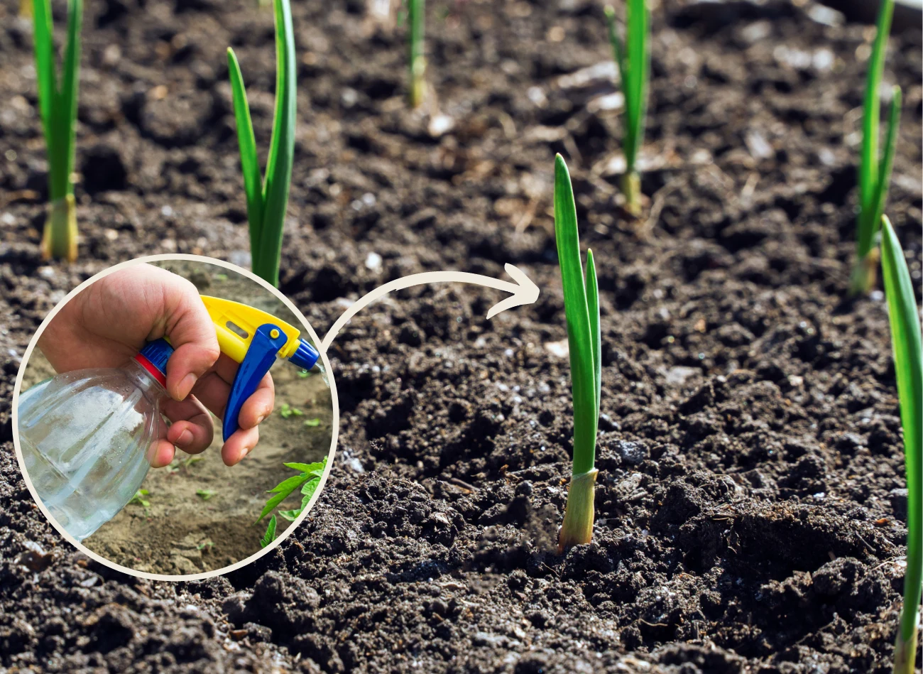 - Nawożenie dolistne — czosnek to warzywo o słabym systemie korzeniowym, dlatego ma ograniczoną zdolność do pobierania składników pokarmowych z gleby. Dlatego chcąc uniknąć niedoborów składników mineralnych, które gwarantują powodzenie uprawy, warto również nawozić czosnek dolistnie, wykorzystując od tego preparaty do roślin cebulowych. Spryskiwanie liści czosnku nawozem najlepiej wykonywać wcześnie rano lub wieczorem.