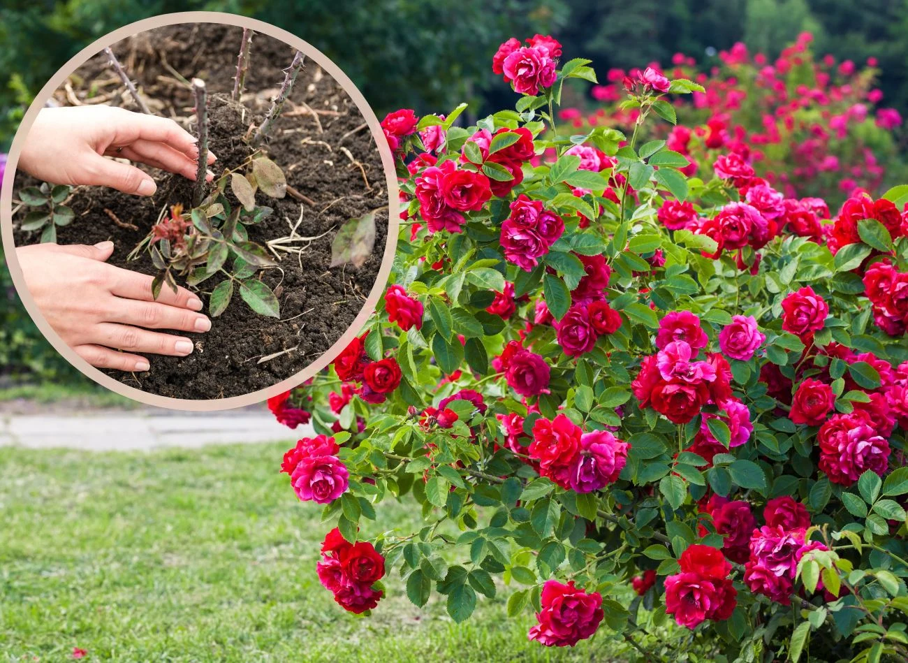 - W trakcie wykopywania starego krzewu róż starajmy się wyjąć całą bryłę korzeniową wraz z dużą ilością gleby, co uchroni system korzeniowy przed przypadkowym uszkodzeniem. Aby to osiągnąć, krzew musimy okopać szeroko i dość głęboko, podważając szpadlem.