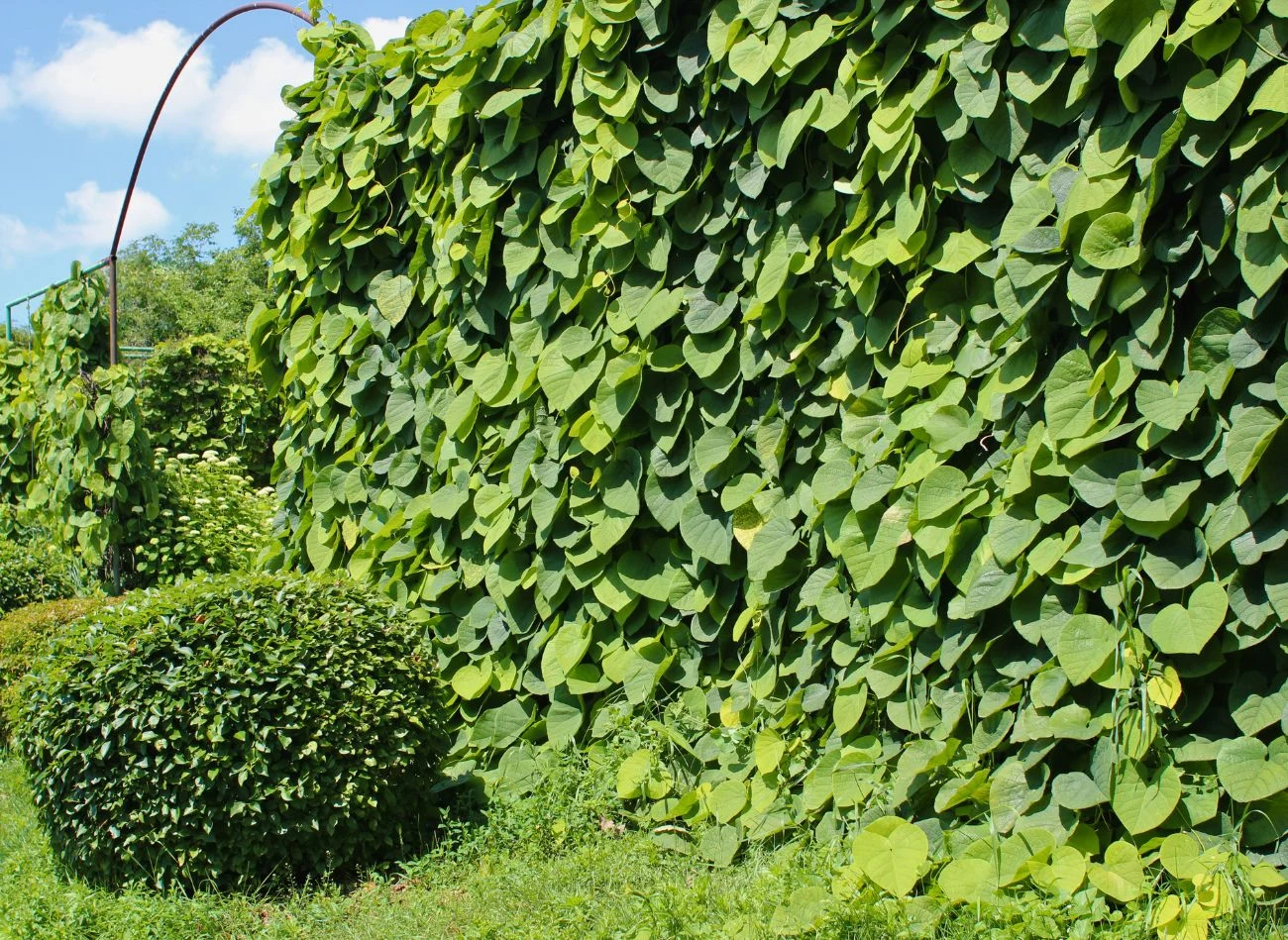 Na żywopłoty rzadko wybiera się pnącza, choć to właściwy kierunek, patrząc na wzrost kokornaka wielkolistnego. Poprowadzony po odpowiedniej podporze z dużą łatwością i w stosunkowo krótkim czasie tworzy zieloną zasłonę, przez którą trudno dojrzeć to, co znajduje się za nią. Budują ją długie pędy przyozdobione sercowatymi liśćmi i to właśnie one tworzą zwartą, zieloną ścianę.