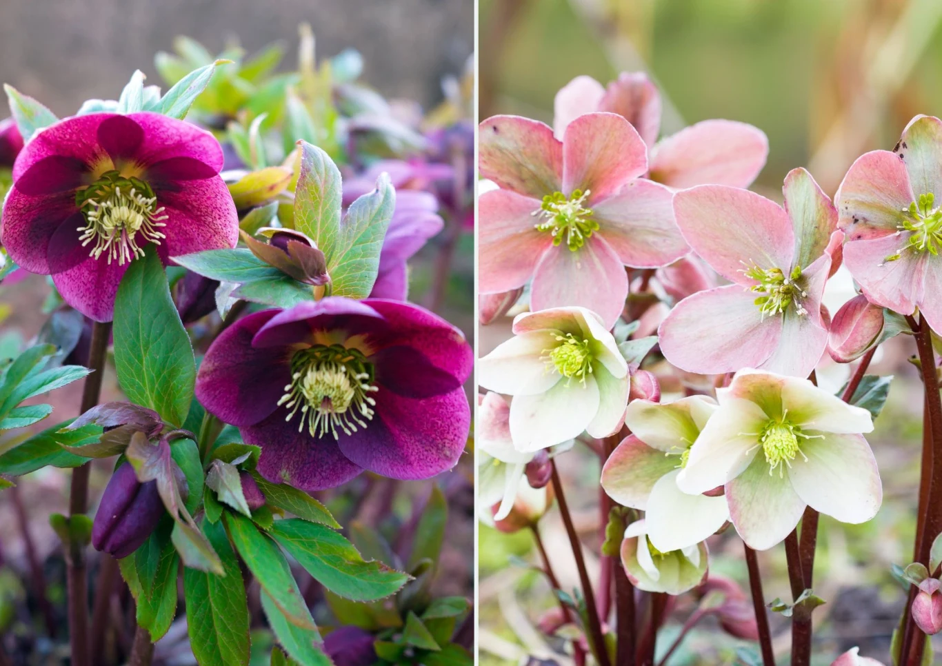 - ciemiernik orientalny – kwitnie w zielono-białych barwach, często z odcieniami różu, pojawiają się od lutego do kwietnia;