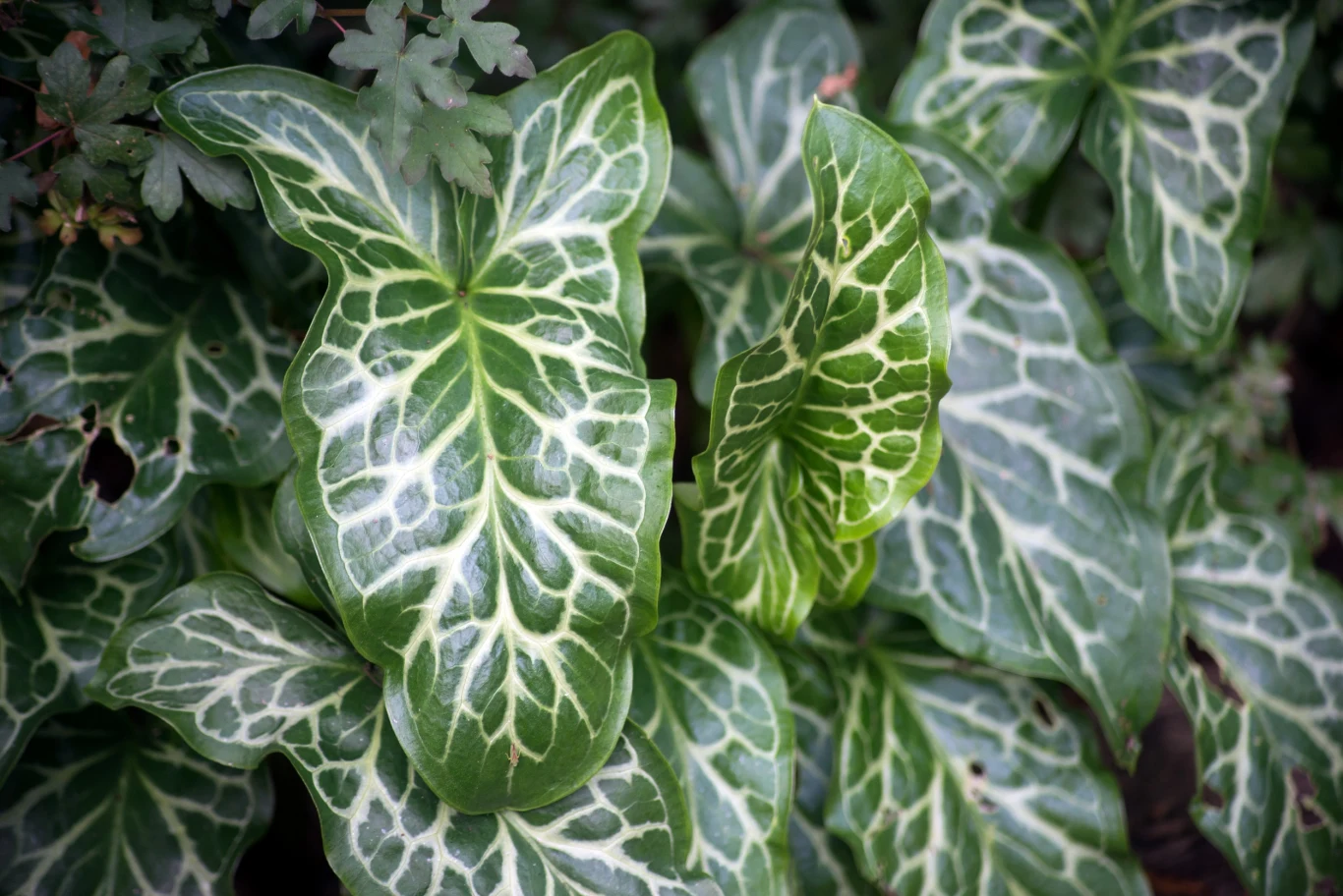 - 'Marmoratum' – odmiana o intensywnie zielonych liściach, które wyróżniają się białym wzorem na blaszce;