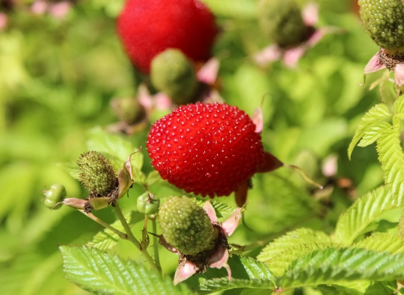 Gdy na nie spoglądam, przypominają mi się od razu dawne żelki tzw. maliny-jeżyny, które w dzieciństwie widywałam niemalże we wszystkich sklepach. Owoce malinotruskawki mają nie tylko wyjątkowy smak, lecz także nietypową, bąbelkowatą strukturę zewnętrzną, nieco szorstką w dotyku. Największe okazy mierzą nawet 5 cm, a to naprawdę sporo. Zawiązane z kwiatów owoce dojrzewają na krzakach stopniowo, co oznacza, że będziesz się nimi cieszyć przez dłuższy czas.