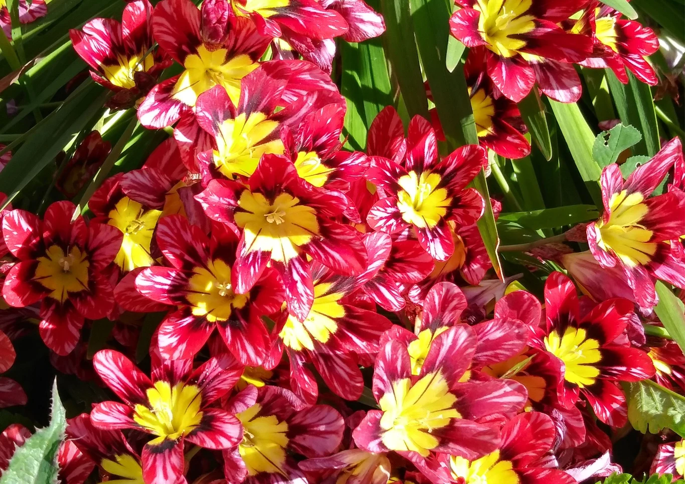 Kwiaty o średnicy 4–5 cm występują w różnych barwach: od białej przez żółtą, pomarańczową, czerwoną po fioletową. Wyróżniają je kontrastowe plamki i prążki na płatkach.