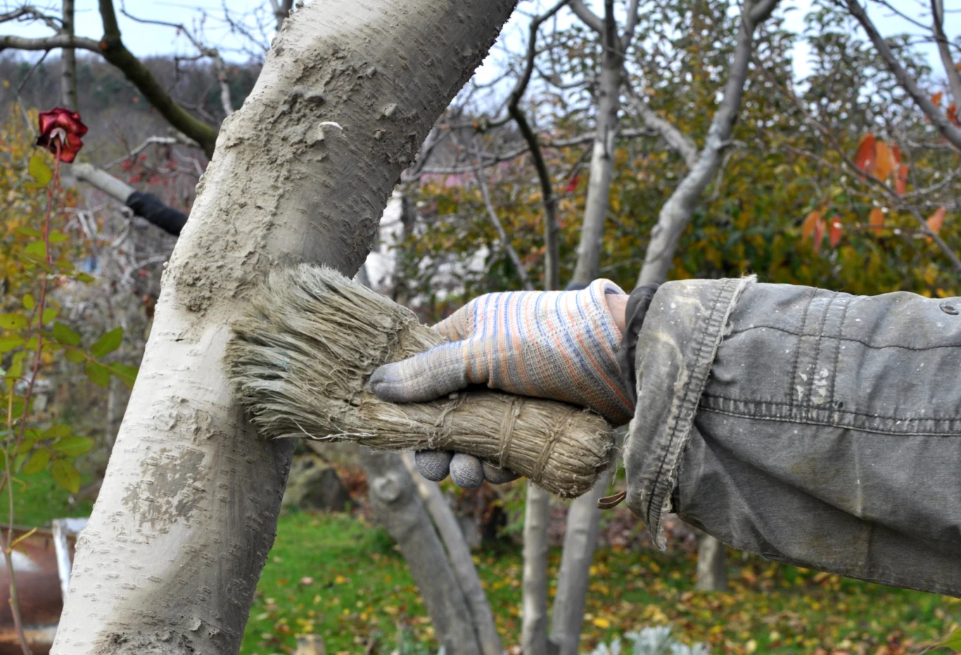 - Mleko wapienne – łączymy 2 kg wapna palonego z 10 litrami wody. Korę czyścimy szczoteczką, a następnie bielimy przygotowanym mlekiem wapiennym. Czynność tę warto wykonać zimą – w styczniu albo grudniu.