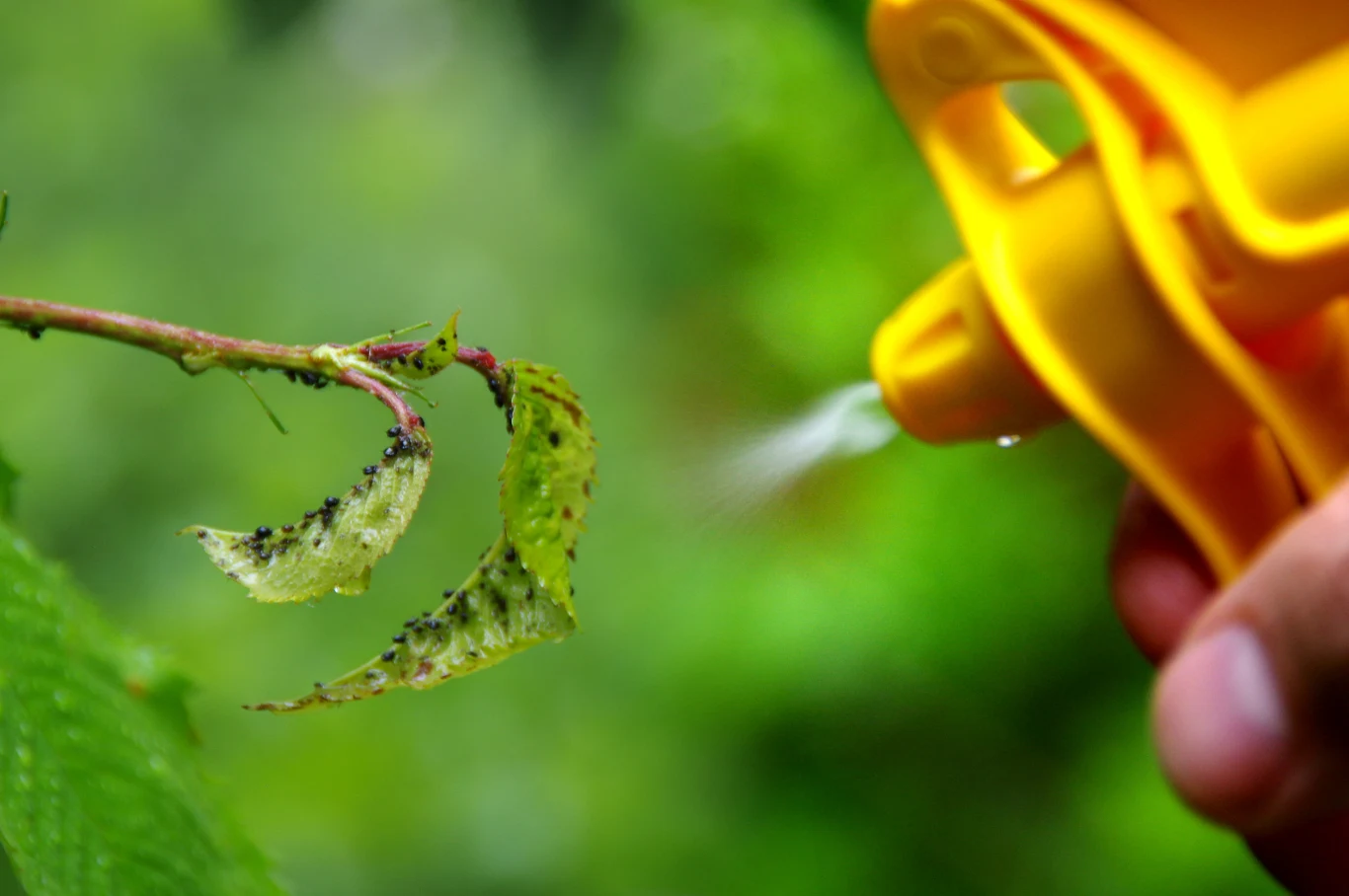 - Strumień wody – jeśli mszyc jest niewiele, możemy spróbować spłukać je z liści i pędów, umieszczając sadzonkę pod bieżącą wodą.