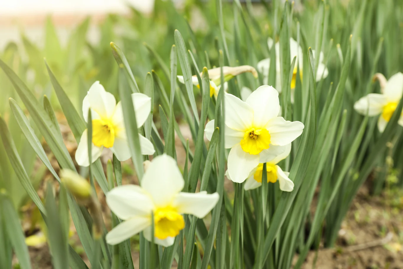 Narcyzy sadzimy tak samo jak pozostałe rośliny cebulowe. Jeżeli robimy to bezpośrednio w gruncie warto wcześniej miejsce to odchwaścić i wyrównać. Głębokość sadzenia to mniej więcej trzykrotność wysokości cebuli. Zatem im mniejsza cebula, tym płycej ją sadzimy. W donicach, które będą potem zakopywane w ziemi możemy sadzić cebule płycej. Pod cebulami powinno znajdować się mniej więcej 15-20 cm podłoża. Po posadzeniu warto przez pewien czas dbać o podlewanie, żeby rośliny pobudzić do ukorzenienia się i zadomowienia w nowym miejscu.