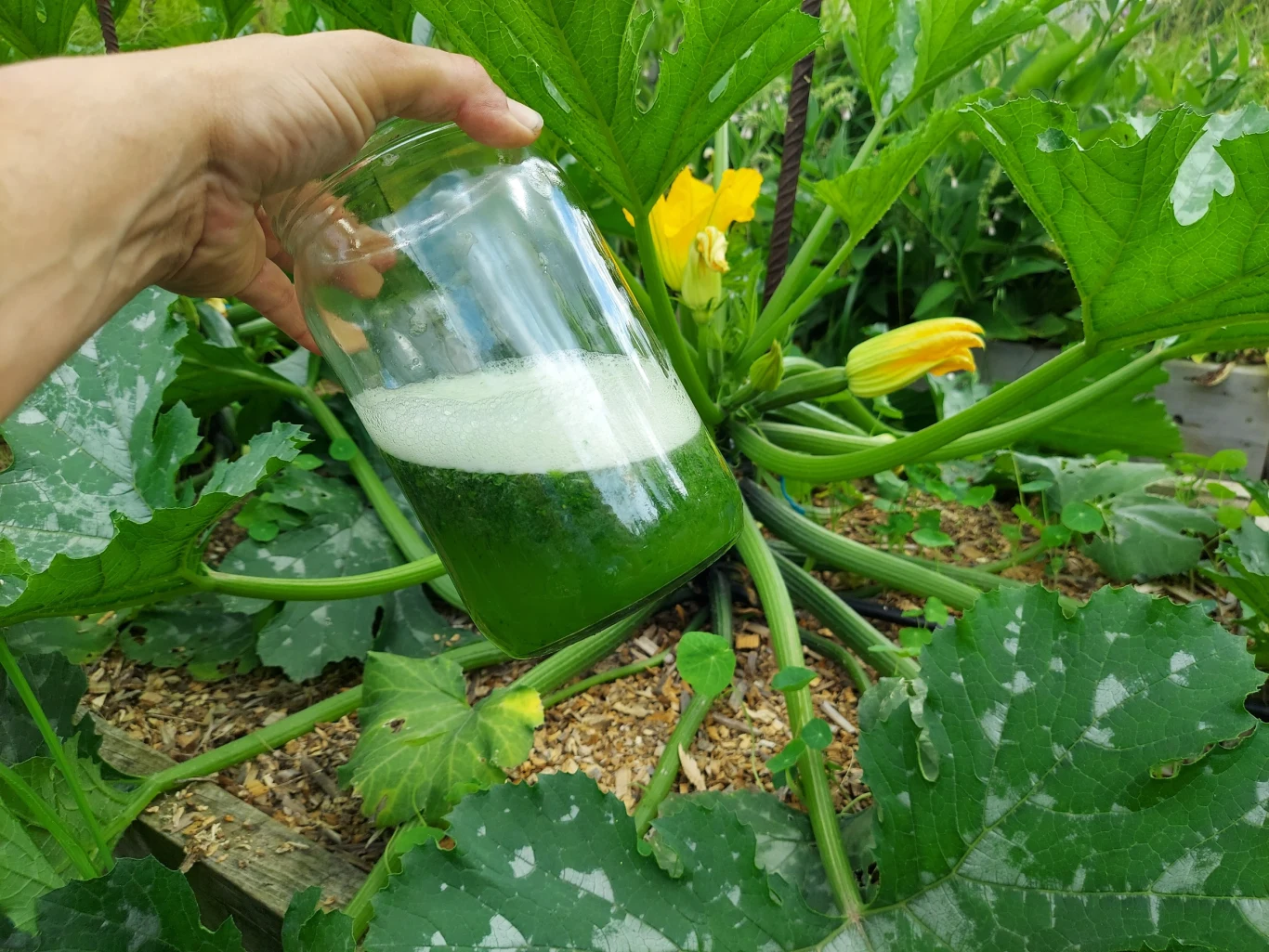 Gotową esencję warto jeszcze rozcieńczyć czystą wodą, zwłaszcza przy pierwszym aplikowaniu, ponieważ podanie tak mocno skoncentrowanej odżywki może zaskoczyć twoje rośliny. Ilość koncentratu zwiększaj stopniowo, obserwując, jak warzywa i owoce w twoim ogrodzie reagują na witaminową bombę w płynie.