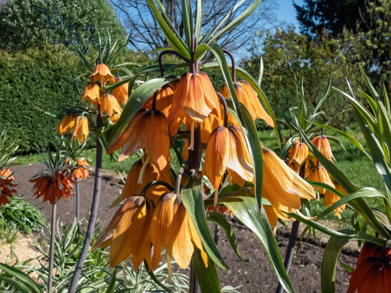 - korona cesarska 'Aurora' o intensywnie pomarańczowych kwiatach,