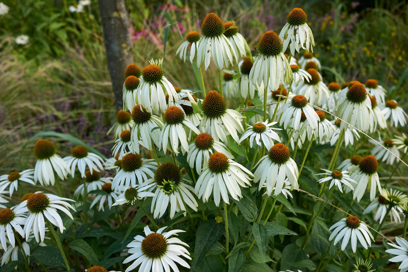 Jeżówka purpurowa tworzy charakterystyczne kwiaty z wyraźnie wystającym, pomarańczowo-brązowym środkiem i różowymi płatkami odchylonymi do tyłu. Jej kwiaty przyciągają motyle, a po przekwitnięciu pozostawiają dekoracyjne, kolczaste szyszki. Doskonale rośnie w pełnym słońcu, tolerując różne typy gleb.