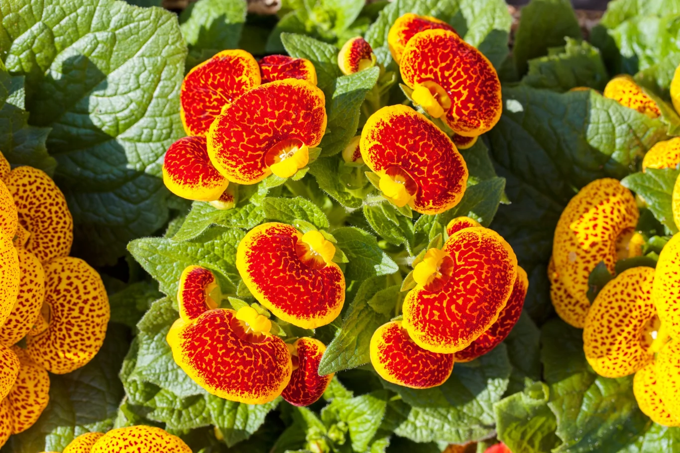 Kalceolaria zawdzięcza swoją popularność niesamowitym kwiatom. To one przyciągają najwięcej uwagi i sprawiają, że nikt nie może przejść obok tej rośliny doniczkowej obojętnie. Składają się z 2-3 płatków sklejonych ze sobą brzegami. W rezultacie można mieć wrażenie, że kwiat jest wypełniony powietrzem, jak nadmuchany balonik lub poduszka. Niektórym przypominają pantofelek (stąd jego potoczna nazwa) lub wydęte wargi. Wbrew pozorom kwiaty pantofelnika są bardzo małe – osiągają zaledwie 2,5 cm wielkości, ale rosną bardzo gęsto, dzięki czemu dają niezwykły efekt.