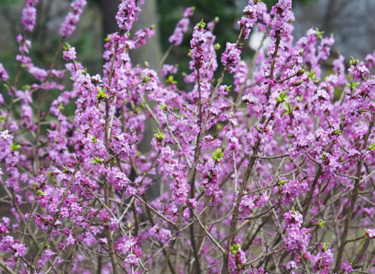 Wawrzynek wilczełyko (Daphne mezereum) to niewielki krzew z rodziny wawrzynkowatych, który dorasta do 1,5 wysokości i około 1 m szerokości (dlatego polecany jest szczególnie do małych ogrodów). Charakteryzuje się powolnym wzrostem i rzadkim rozgałęzieniem. Roślina ta ma zwarty, kulisty pokrój oraz sztywne, wyprostowane gałęzie. Największą ozdobą wawrzynka są kwiaty, które pojawiają się w marcu lub kwietniu (czasem nawet pod koniec lutego), gdy na jego pędach nie ma jeszcze liści. Są drobne, zazwyczaj mają barwę różową lub różowofioletową (rzadziej białą) oraz tworzą nieduże, gęsto skupione grupy wokół pędów. Oprócz tego roztaczają przyjemny, intensywny zapach, który przypomina woń hiacyntów. Aromat kwiatów przyciąga pszczoły, co sprawia, że wawrzynek jest rośliną miododajną.