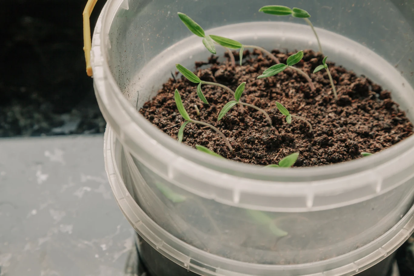 Po wysiewie, nasiona przykrywamy cienką, mniej więcej pół centymetrową warstwą podłoża lub piasku. Nawilżamy za pomocą opryskiwacza i możemy przykryć szybą lub kawałkiem folii, pamiętając o codziennym wietrzeniu. Przykrycie to pomoże zachować odpowiednią wilgotność podłoża do czasu pojawienia się wschodów, co powinno nastąpić po około tygodniu. Wysiewy pomidora umieszczamy w cieple, w temperaturze 22-25 stopni Celsjusza.