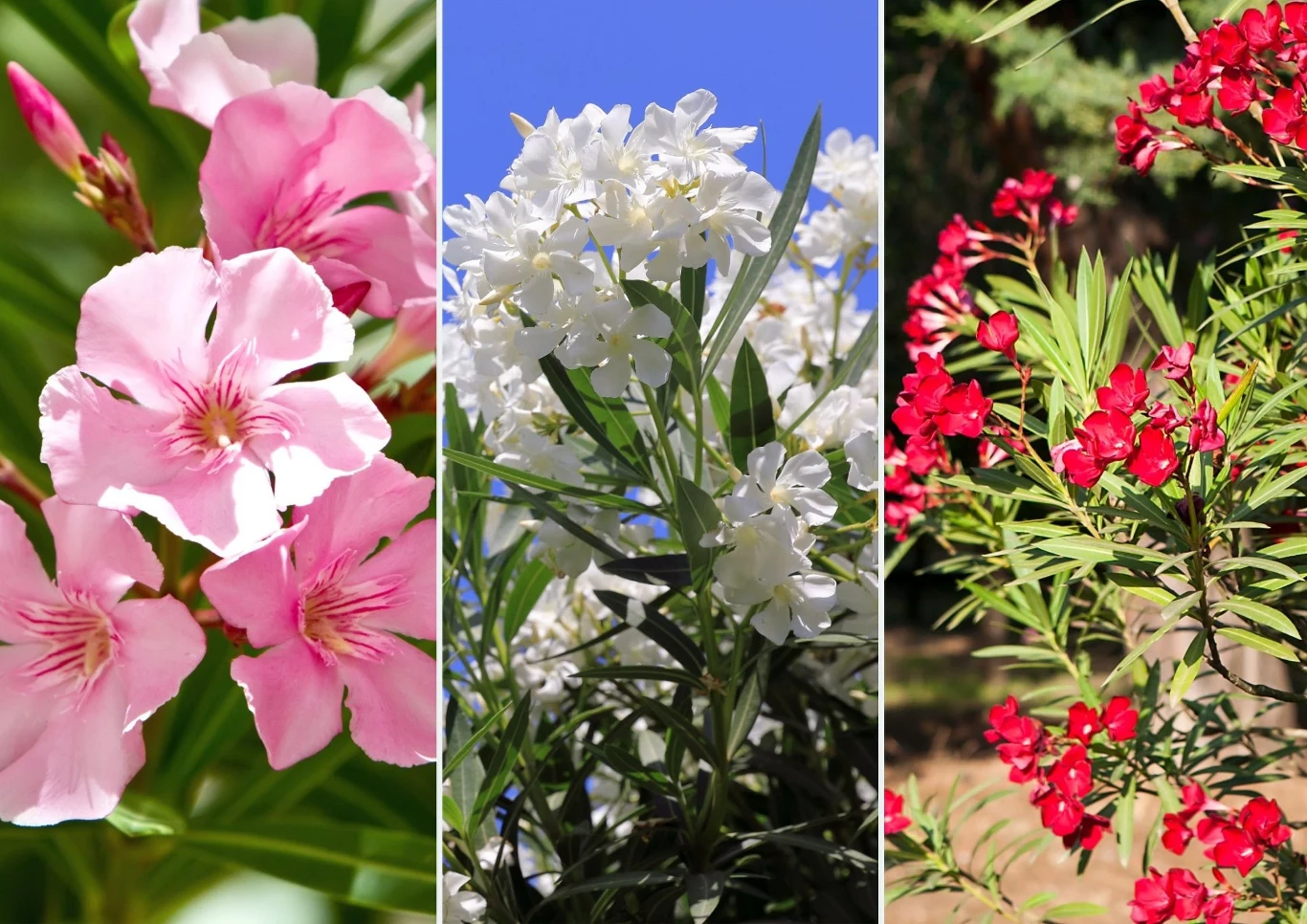 Oleandry mogą występować w różnych odmianach, które różnią się między sobą wielkością i kolorem, te najbardziej popularne to: