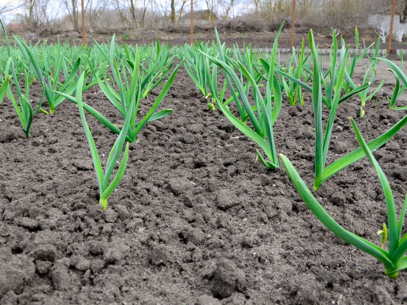 Wczesną wiosną nawozimy czosnek, gdy panują ku temu sprzyjające warunki - śnieg już stopniał, a ziemia rozmarzła. W tym czasie zauważymy, że z ziemi wyrastają zielone pędy, co dla nas jest sygnałem, że pora dostarczyć roślinie niezbędnych składników odżywczych.