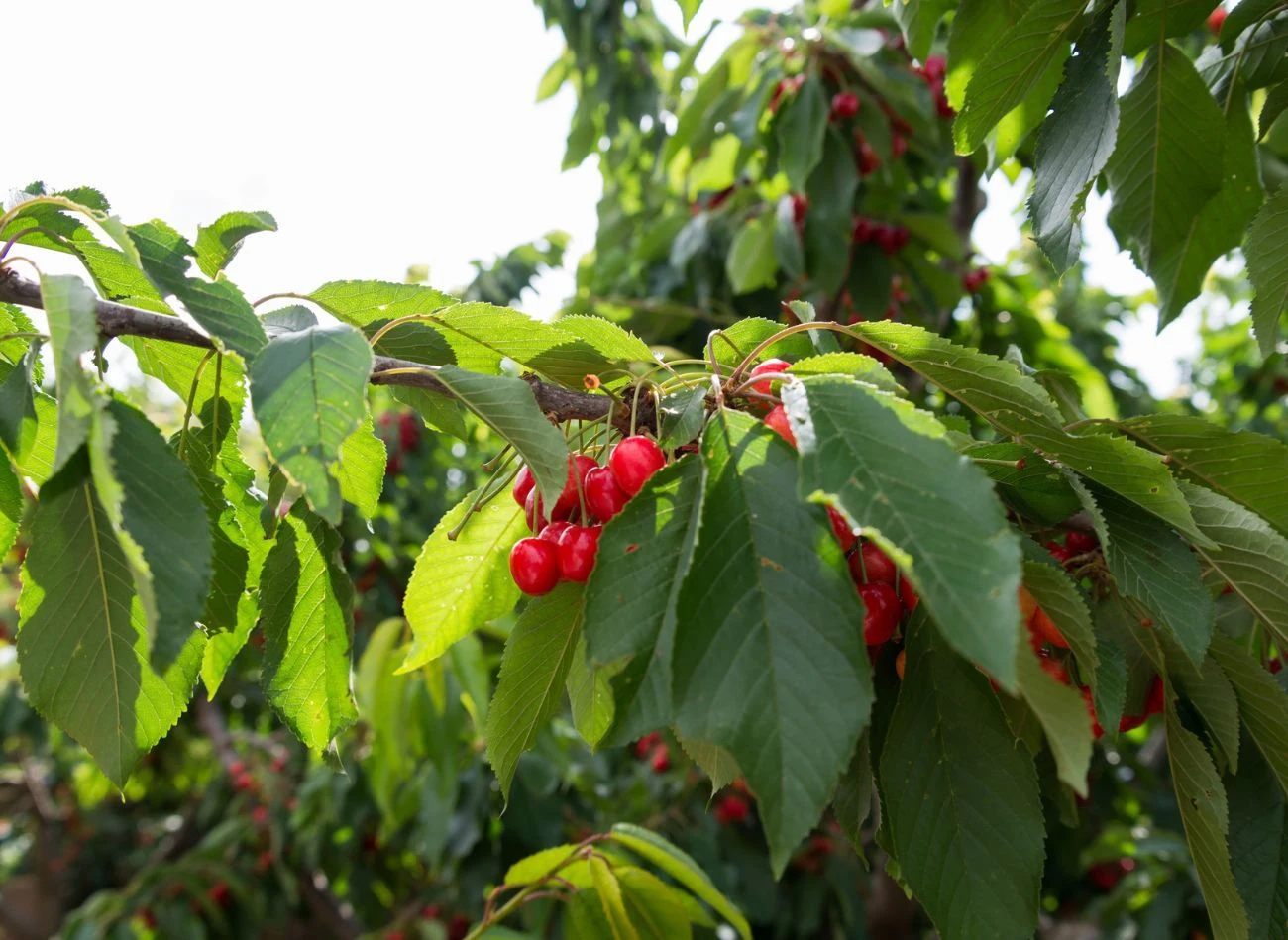 - Wiśnie - to drzewo dające owoce najszybciej, bo już w 2-3 lata po posadzeniu. Jest odporne na nasze warunki klimatyczne, owocuje na początku lipca.