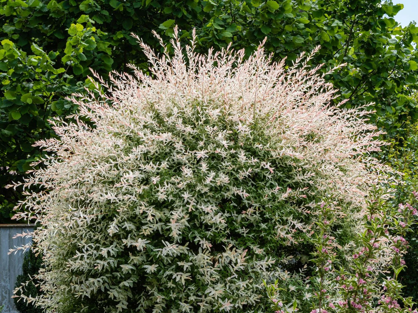 Aby jak najdłużej utrzymać dekoracyjność wierzby, konieczne jest regularne i przemyślane przycinanie pędów. W ten sposób stymuluje się wyrastanie nowych przyrostów z kontrastującymi, jasnymi liśćmi. Cięcie zapobiega także przerzedzeniu korony oraz zwisaniu rozkładaniu się pędów, zapewniając zwarty, kulisty pokrój drzewka - zwłaszcza u form na pniu.