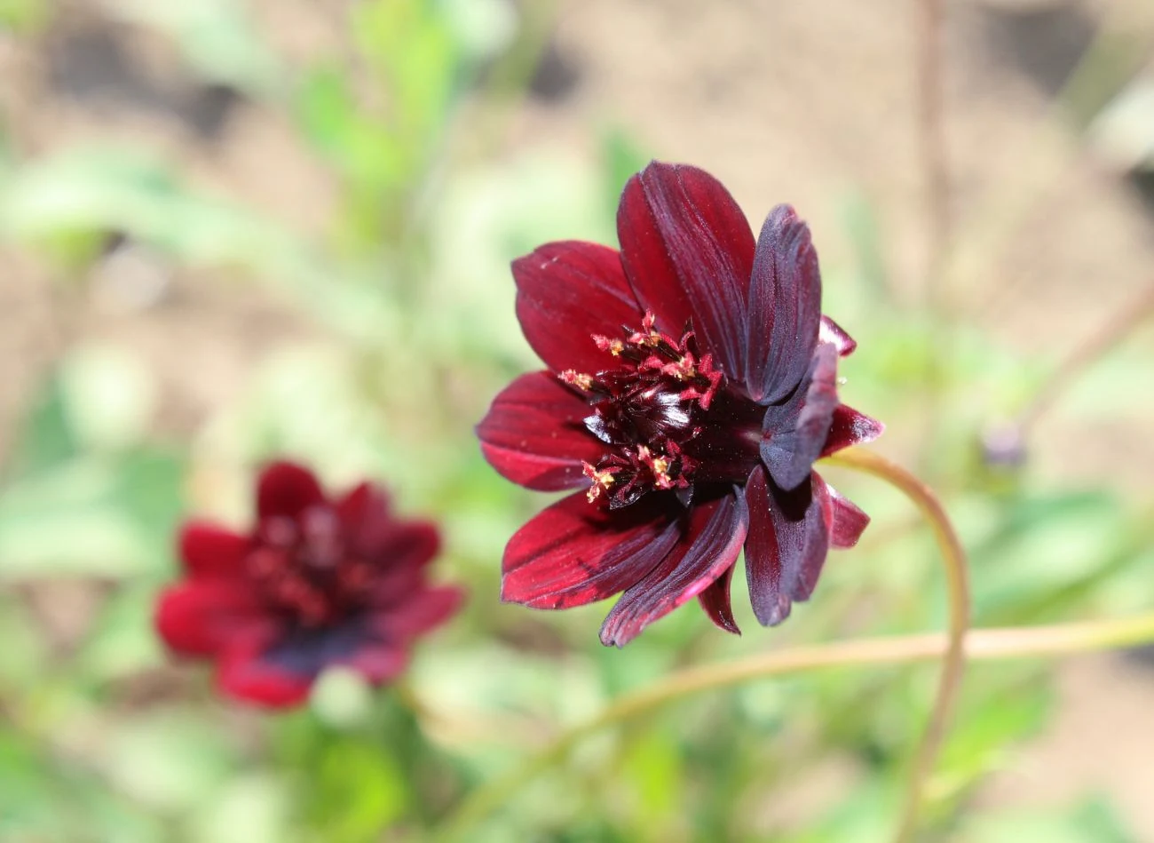 Kosmos czekoladowy to bylina, której kwiaty pachną czekoladą z nutą wanilii. Woń jest wyczuwalna zwłaszcza w ciepłe, słoneczne dni i wieczorem – wystarczy zbliżyć nos, by poczuć zapach przypominający gorące kakao. Ciemnobordowe, niemal brązowe płatki o średnicy około 5 cm wyglądają równie apetycznie, jak pachną.