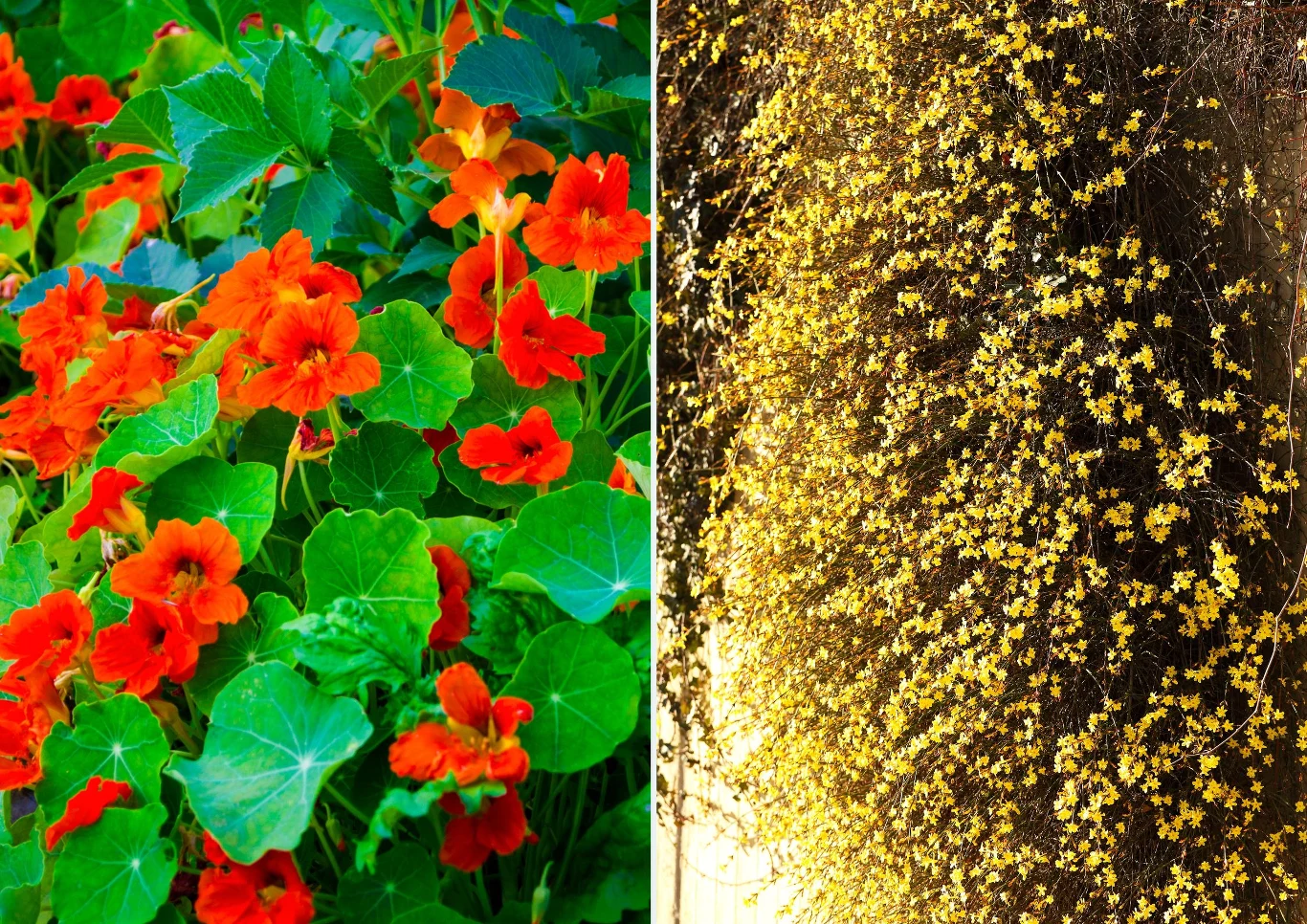 - Nasturcja pnąca to jednoroczna, silnie rosnąca roślina o charakterystycznych, wiotkich liściach. W sezonie może osiągnąć nawet 3 m wysokości. Zwykle czerwone kwiaty osiągają wielkość do 7 cm. Co interesujące, kwiaty nasturcji pnącej są jadalne i zawierają wiele witamin i minerałów, co oznacza, że są świetnym dodatkiem do wiosennych i letnich sałatek.