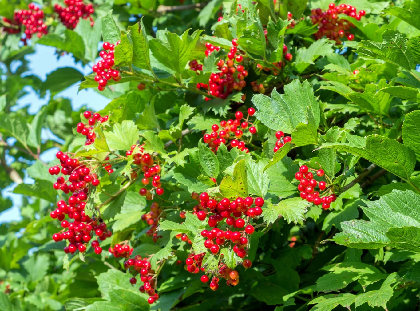 Niektóre krzewy mają interesujące, przyciągające wzrok kolorowe owoce. Chociaż najczęściej w przypadku kaliny koralowej uwagę zwracają kwiaty, pojawiające się już w kwietniu i maju, jesienią czaruje właśnie owocami. Drobne, czerwone jagody zebrane w kiściach okazują się naprawdę wyjątkowe – ich wysoka przezroczystość sprawia, że wyglądają jakby były ze szkła.