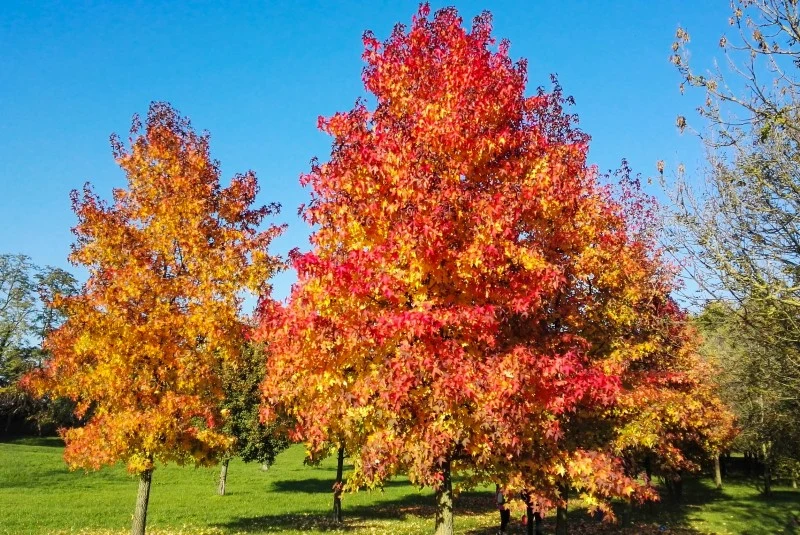 To właśnie on może zaprezentować jesienią najbardziej kolorowe liście. To duże drzewo (około 25 metrów wysokości), żyjące do 300 lat. Jeśli chcemy je uprawiać w ogrodzie, musimy pamiętać, że nie jest mrozoodporne i wymaga zabezpieczenia na zimę (zwłaszcza młode okazy). Choć w cieplejszych miesiącach jego liście są z wierzchu soczyście zielone, w okolicy października prezentują prawdziwą feerię barw. Mogą stać się czerwono-żółte, rubinowe lub czerwono-zielone. Więcej o tej roślinie przeczytasz TUTAJ.