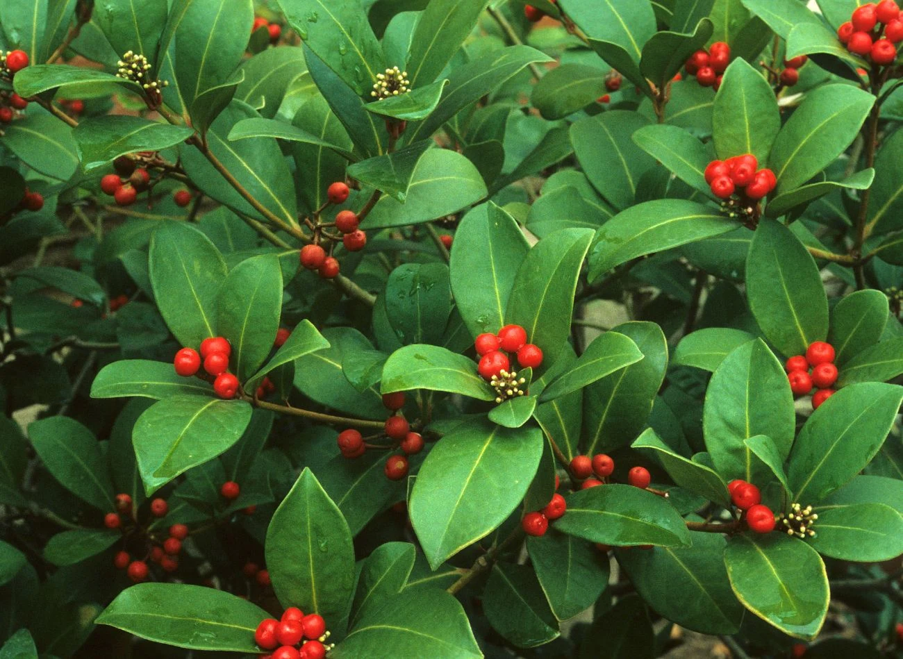 Skimia japońska ( Skimmia japonica) to gatunek z rodziny rutowatych. Często kojarzy się ze świętami Bożego Narodzenia ze względu na swoje lśniące liście oraz czerwone jagody. Ten krzew nie traci kolorów zimą — można go hodować zarówno w ogrodzie, jak i w donicach, np. na balkonie. Z tego powodu doskonale sprawdzi się również na cmentarzu.