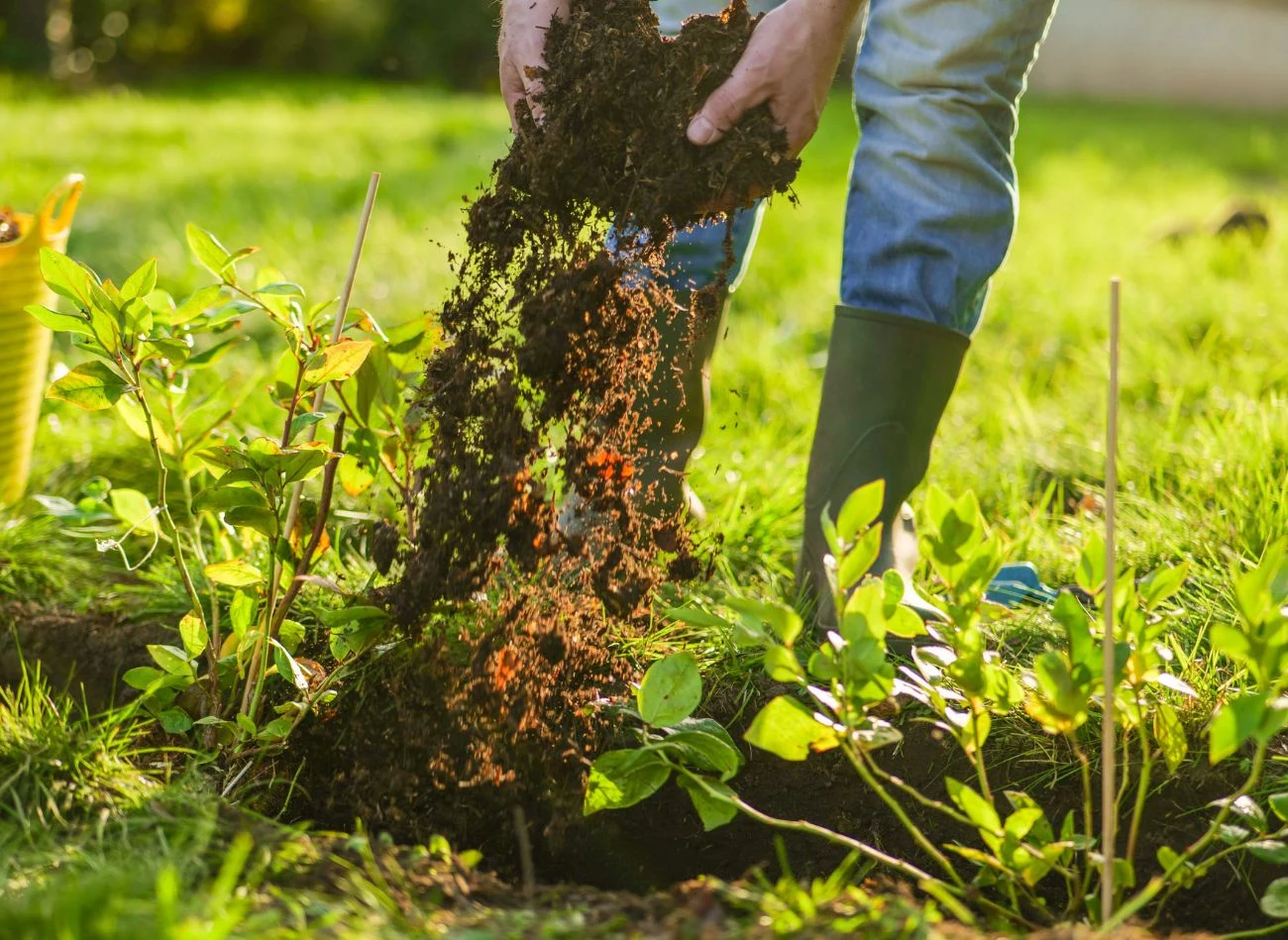 Co dać pod korzeń borówki, żeby dobrze się przyjęła? Dobrym rozwiązaniem jest dodanie do dołka sadzeniowego specjalnego nawozu startowego dla roślin kwasolubnych lub garści zmielonej siarki, która pomoże utrzymać odpowiednie pH.