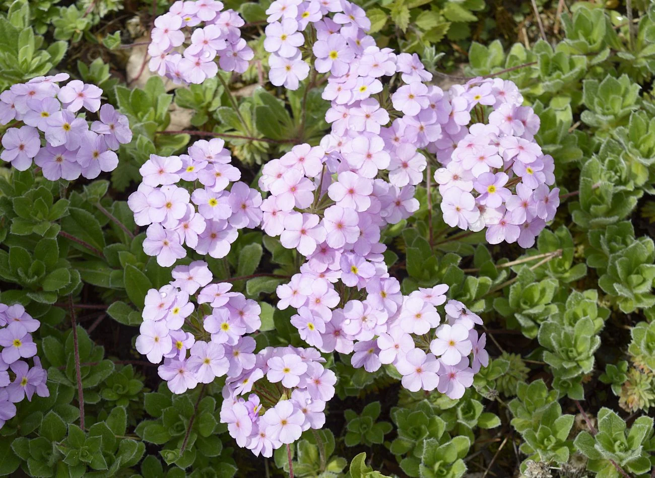 - Naradka północna ( Androsace septentrionalis) – odmiana 'Stardust' ma białe kwiaty o żółtej gardzieli;