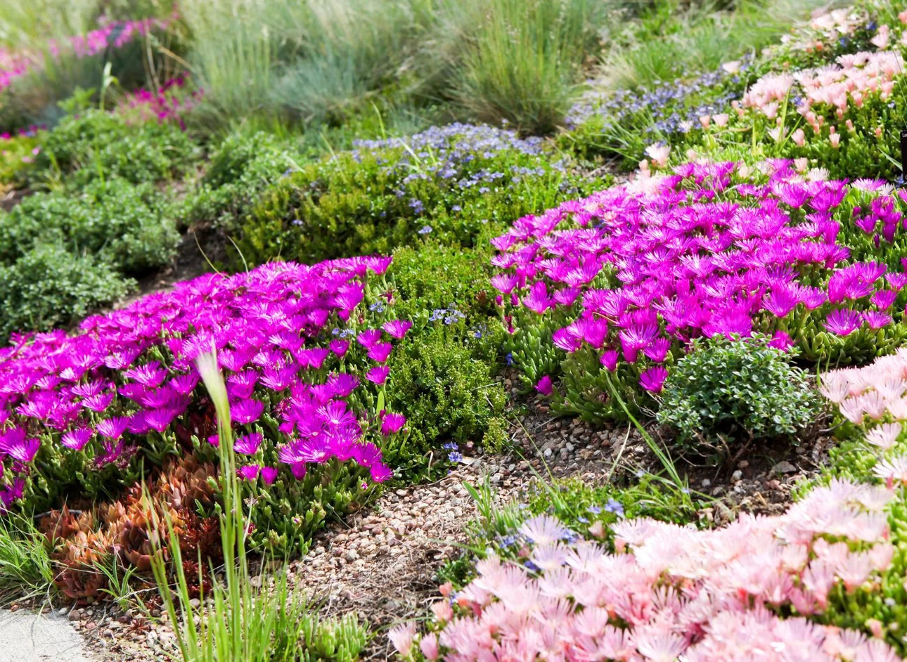 - Słonecznica (Delosperma) – te kwitnące sukulenty są znane z ich jaskrawych, barwnych kwiatów i są w stanie przezimować na zewnątrz. Delosperma tworzy gęste, kolorowe dywany, które mogą pokrywać skalniaki, dodając im uroku.
