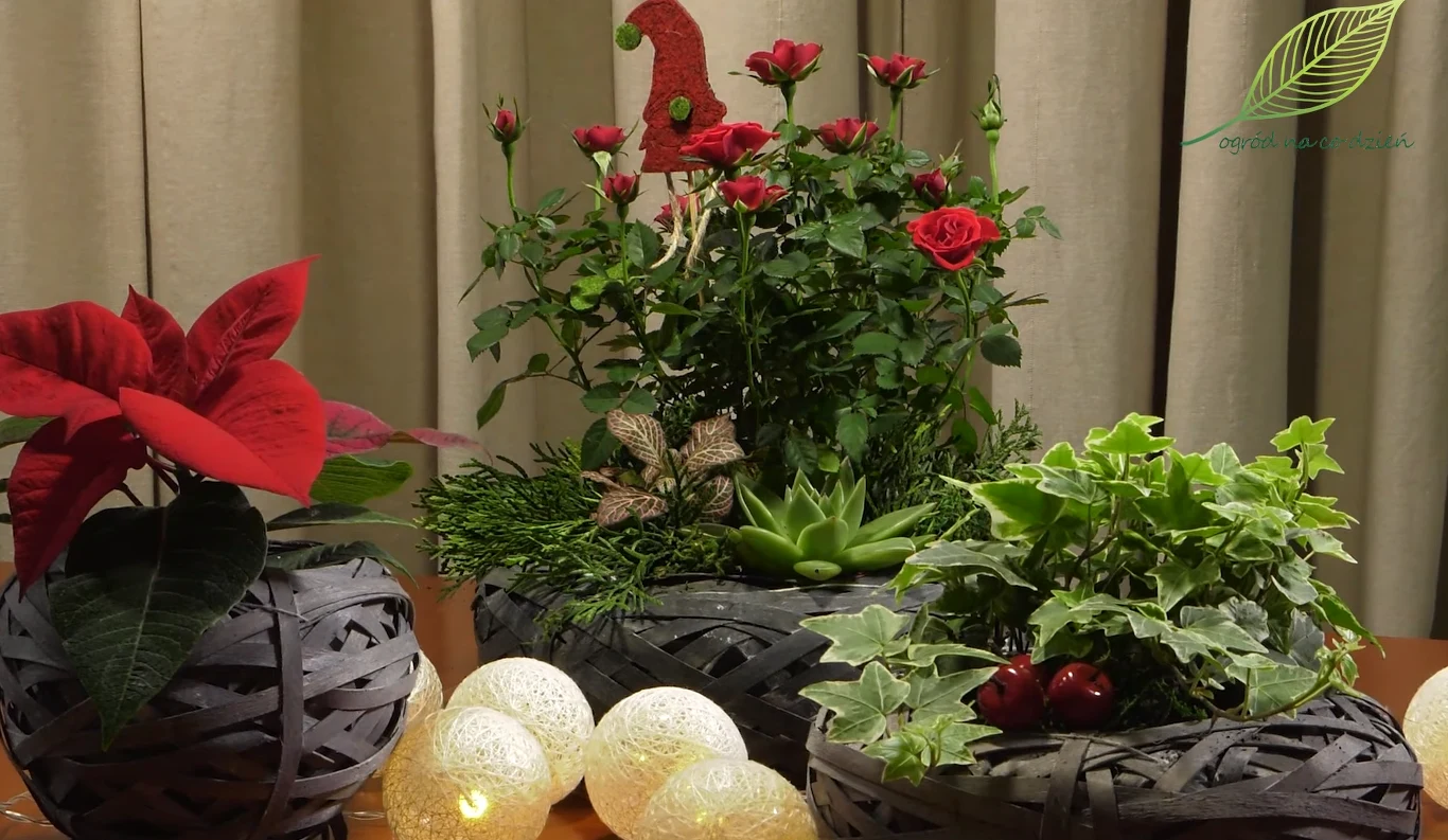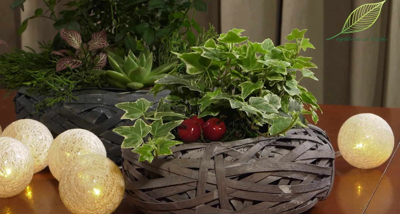 Nawet najbardziej popularne domowe rośliny doniczkowe, które towarzyszą nam na co dzień przez cały rok mogą stać się częścią świątecznej ozdoby. Wystarczy je tylko odświętnie przybrać. W dzisiejszym odcinku znajdzie się miejsce dla takich gatunków jak: miniaturowa róża, fitonia, eszeweria, bluszcz i poinsecja. Trafią one do trzech ozdobnych koszyków. Zaczniemy od najmniejszego.