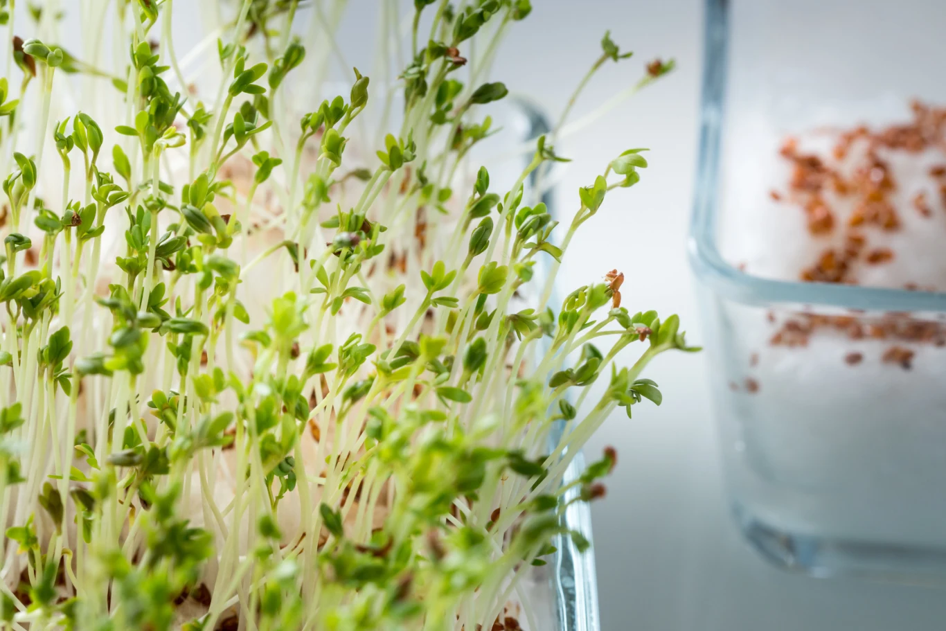 Nasiona zaczną pęcznieć już po pierwszym dniu. W kolejnych wypuszczą maleńkie kiełki – będą gotowe do jedzenia, kiedy osiągną ok. 4 – 5 cm wysokości. Po upływie ok. tygodnia rzeżucha utworzy zielony kobierzec. Ścięte kiełki (bez korzeni) można przechowywać w lodówce najwyżej dobę.