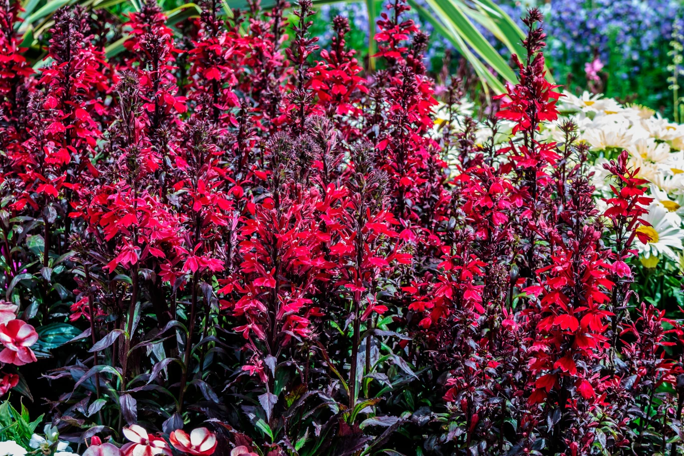 - Lobelia szkarłatna – kwitnie długo i intensywnie w okresie od lipca do września. Jej kwiaty ułożone są jednostronnie i tworzą dekoracyjne, wąskie, kłosowate kwiatostany. Rozwijają się stopniowo, od dołu do góry oraz mają intensywnie czerwoną barwę. Doskonale nadająca się do uprawy w pobliżu oczka lub zbiornika wodnego, gdyż lubi wilgotne podłoża.