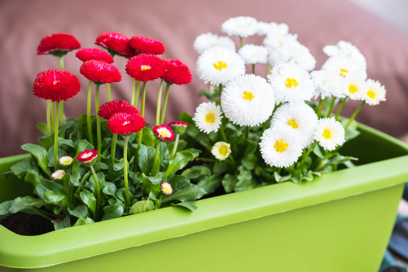 Później ich uroda blednie i trzeba je wymienić na pelargonie lub inne okazy, które ozdobią balkon do końca sezonu. Stokrotki, zależnie od odmiany mają kwiaty mniej lub bardziej pełne, zakwitają w odcieniach bieli (np. odmiana " The Pearl"), różu (np. odmiana "Dresden China") i czerwieni (np. odmiana "RobRoy").