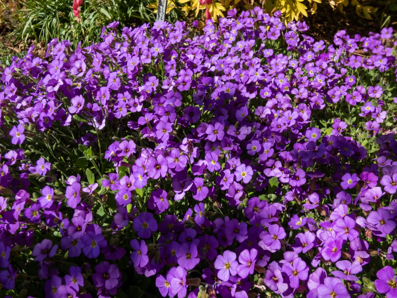 - Żagwin ogrodowy ( Aubrieta cultorum) – niezwykłej urody bylina, która osiąga zaledwie 10 cm wysokości. Choć jest niepozorna, trudno przejść obok niej obojętnie. Tworzy wspaniałe, gęste poduchy drobniutkich kwiatów w kolorze bieli, różu lub fioletu. Żagwin ogrodowy jest jedną z najpopularniejszych roślin na skalniaki, ale warto znaleźć dla niego miejsce także na słonecznych rabatach, murkach oraz pojemnikach na tarasie.