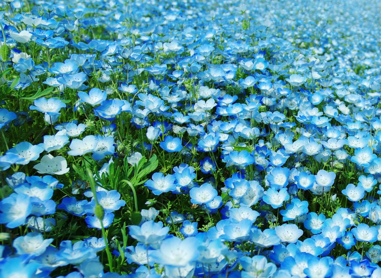 Porcelanka Menziesa ( Nemophila menziesii) jest niska i niepozorna, robi jednak ogromne wrażenie na każdym, kto ma okazję ją oglądać. Ta pochodząca z Kalifornii jednoroczna roślina okrywowa osiąga w naszych ogrodach zaledwie 15-20 cm, ale przykuwa wzrok intensywnie wybarwionymi kwiatami. Ukazują się długo, bo od drugiej połowy czerwca nawet do sierpnia (krócej w wyjątkowo upalne lata). Kwiaty o średnicy ok. 2 cm mają po 5 błękitnych płatków i białe środki.