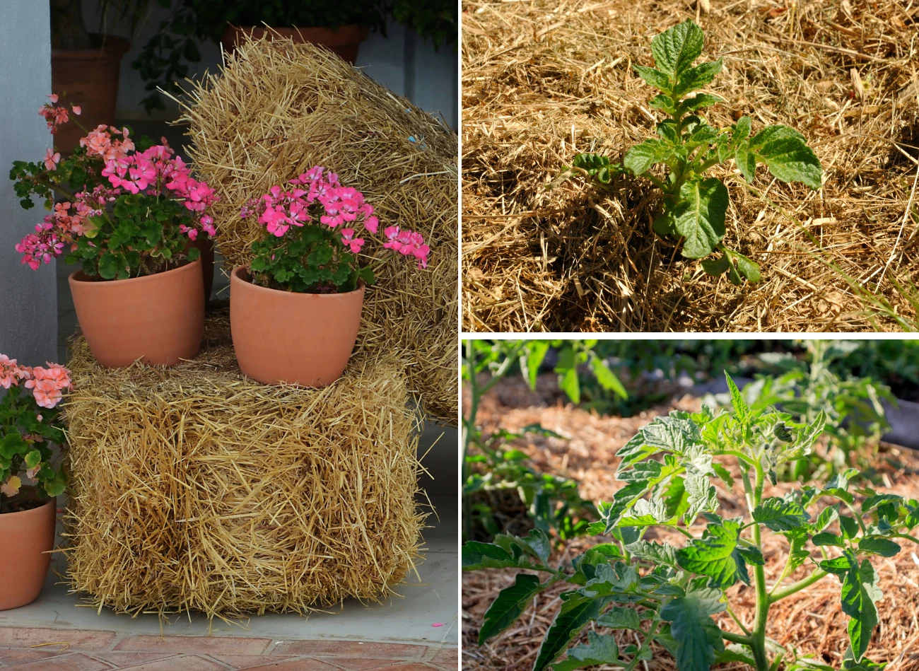 - Kostki słomy ochraniają rośliny przed zimnem, co ma znaczenie w przypadku roślin ciepłolubnych, zwłaszcza wczesną wiosną, gdy zdarzają się jeszcze przymrozki.