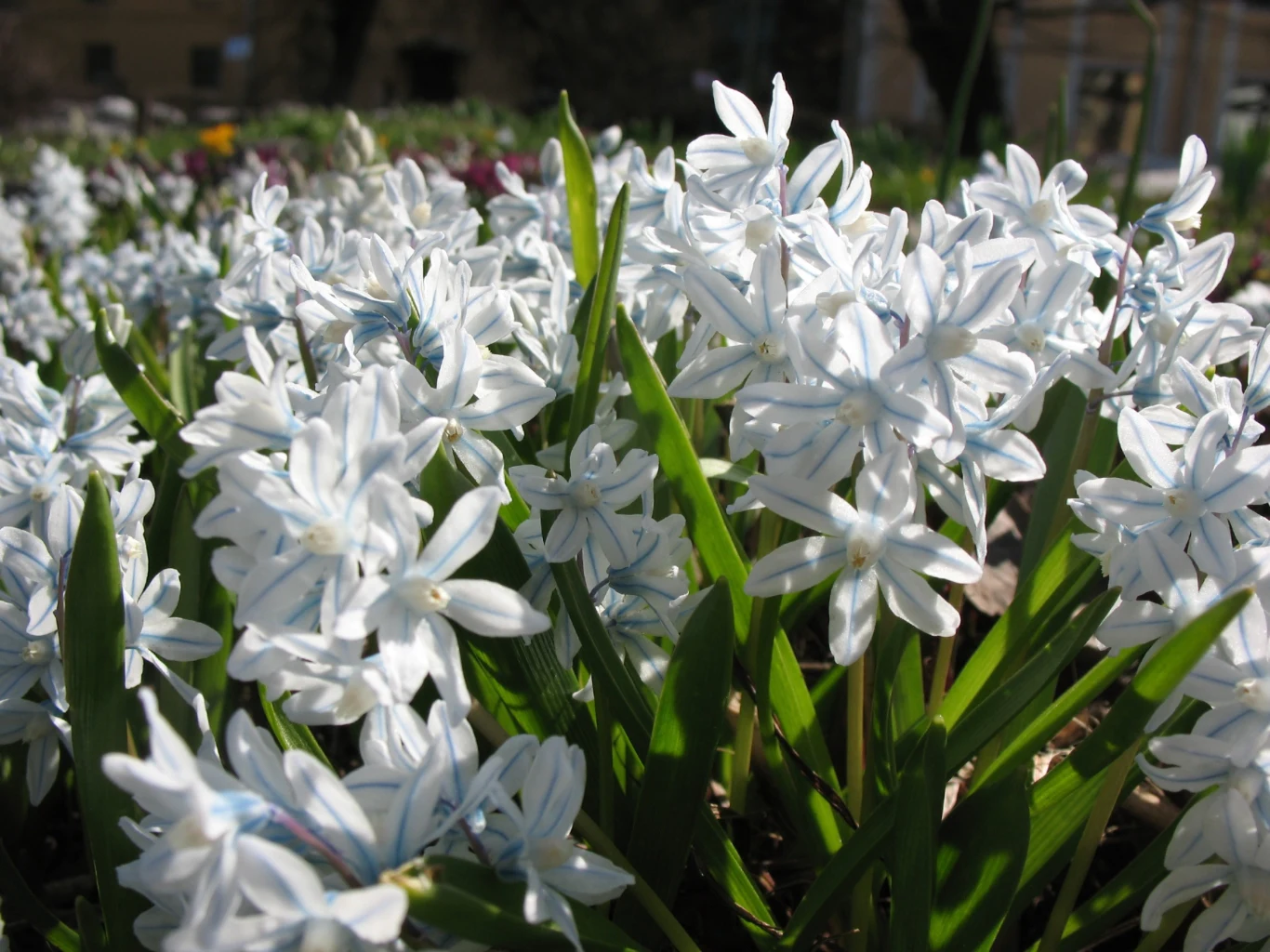 Puszkinia cebulicowata (Puschkinia scilloides), choć nie należy do grona najpopularniejszych roślin cebulowych, zdecydowanie zasługuje na miejsce w każdym ogrodzie. Jest to niewielka bylina należąca do rodziny szparagowatych, która pochodzi z gór Kaukazu. Osiąga około 20 cm wysokości. Z pojedynczej cebulki puszkinia wytwarza 2-3 liście – są one mięsiste, wąskie, rynienkowate i spiczasto zakończone o długości około 15 cm. Z pomiędzy liści wyrasta wzniesiony i nagi pęd kwiatostanowy. Na jego szczycie pojawiają się bardzo ładne, dzwoneczkowate kwiaty o średnicy 8-10 mm. Zebrane są one w luźne grona złożone z kilku lub kilkunastu sztuk. Można je porównać do kwiatostanów hiacyntów i nie ma co się temu dziwić, gdyż należą do tej samej rodziny.