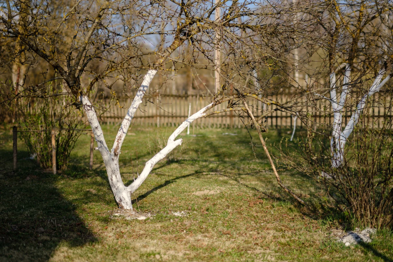 W zimowej pielęgnacji drzew istotne znaczenie ma bielenie pni, które stosowane jest od wieków. Mleko wapienne lub specjalny preparat odbija promienie słoneczne, zapobiegając nagrzewaniu się kory w słoneczne dni. Dzięki temu eliminujesz ryzyko pękania kory, które powstaje na skutek gwałtownych zmian temperatury między dniem a nocą. Uważa się, że bielenie pomaga również w zwalczaniu zimujących w korze szkodników i ich larw.