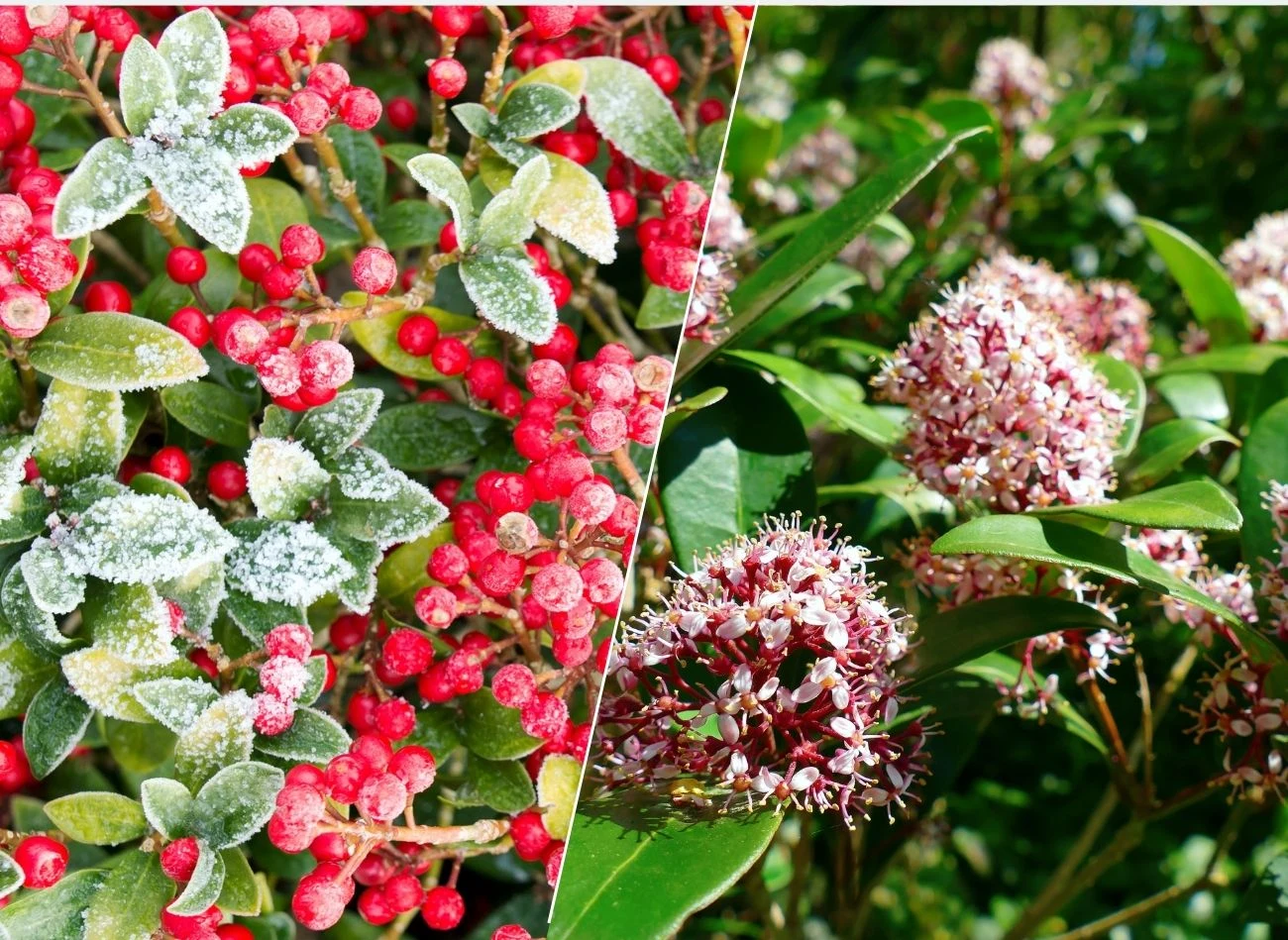 Skimia japońska ( Skimmia japonica) ze względu na swój niezwykły wygląd cieszy się coraz większą popularnością w naszych ogrodach. Pochodząca z Dalekiego Wschodu roślina nie przestaje zachwycać przez okrągły rok. Znana jest ze swych ozdobnych, skórzastych liści w kolorze ciemnozielonym, które nie opadają na zimę. Zimozielony krzew wiosną dekorują groniaste, gęste kwiatostany, które wspaniale kontrastują z wyraziście zabarwionym ulistnieniem. Pachnące słodyczą kwiaty mogą być kolorze mlecznobiałym, żółtym lub różowym. Kwitnienie skimii japońskiej trwa od maja do czerwca.
