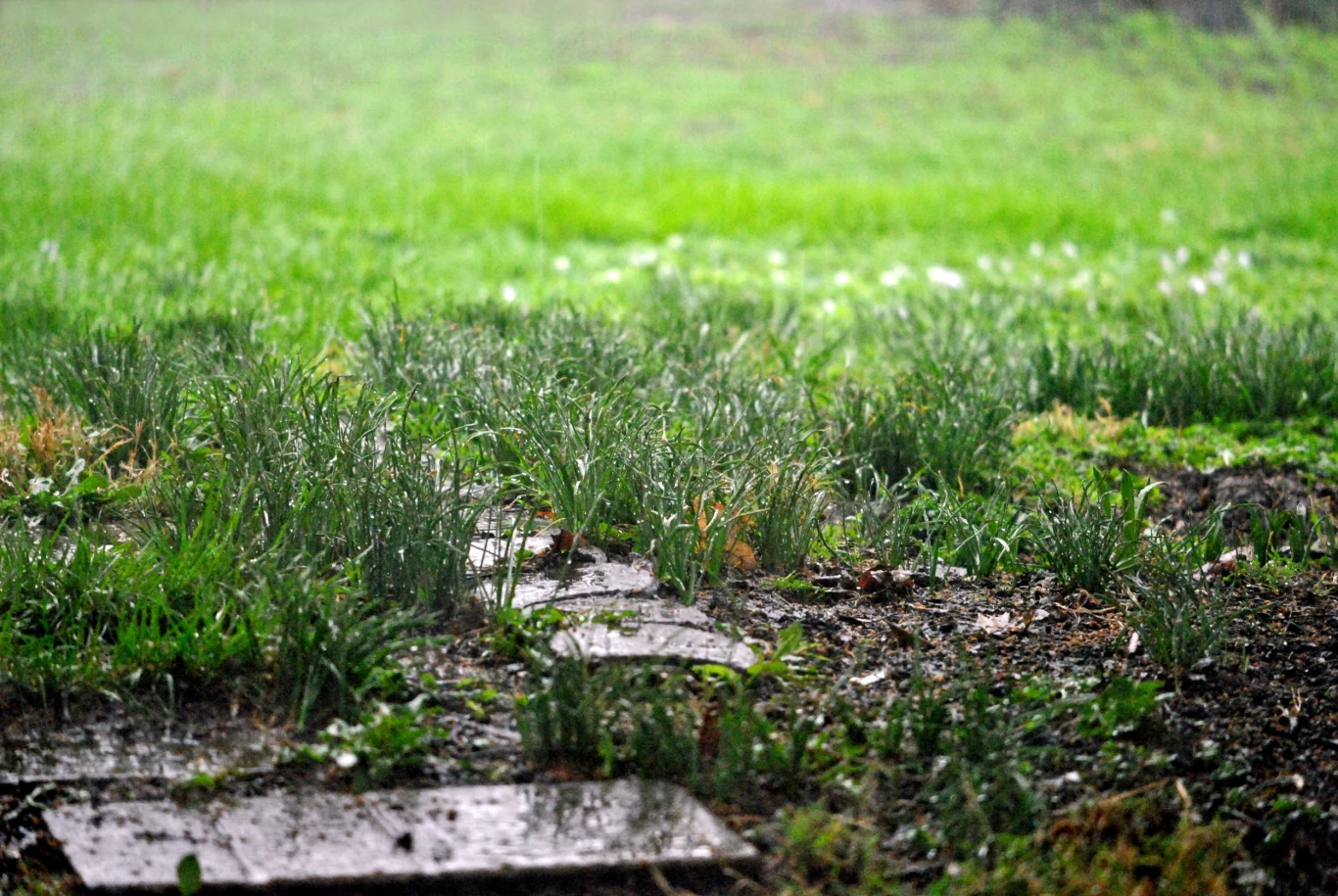 - Deszcz zalewa trawy i rabaty