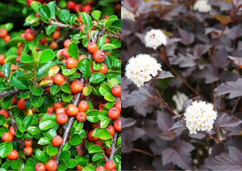 Irga Dammera i pęcherznica kalinolistna imponująco prezentują się w żywopłocie. Fot. MrGajowy3/skymoon13/Canva Pro