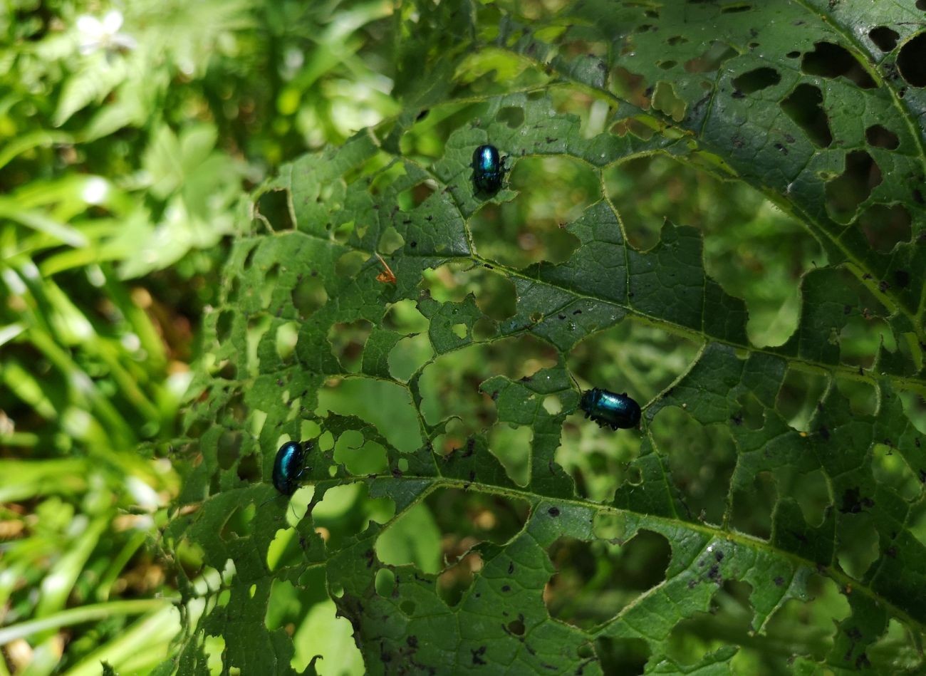 - pchełka czarna (Phyllotreta atra): ma jednolicie czarne, metaliczne ciało o długości 2-3 mm. Atakuje szeroki zakres roślin kapustowatych, wygryzając małe otwory w liściach;