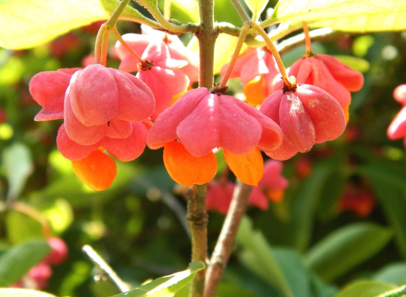 Trzmielina tworzy zielone ściany, a kwiaty i owoce są ich barwnym dodatkiem. Fot. mila_1989