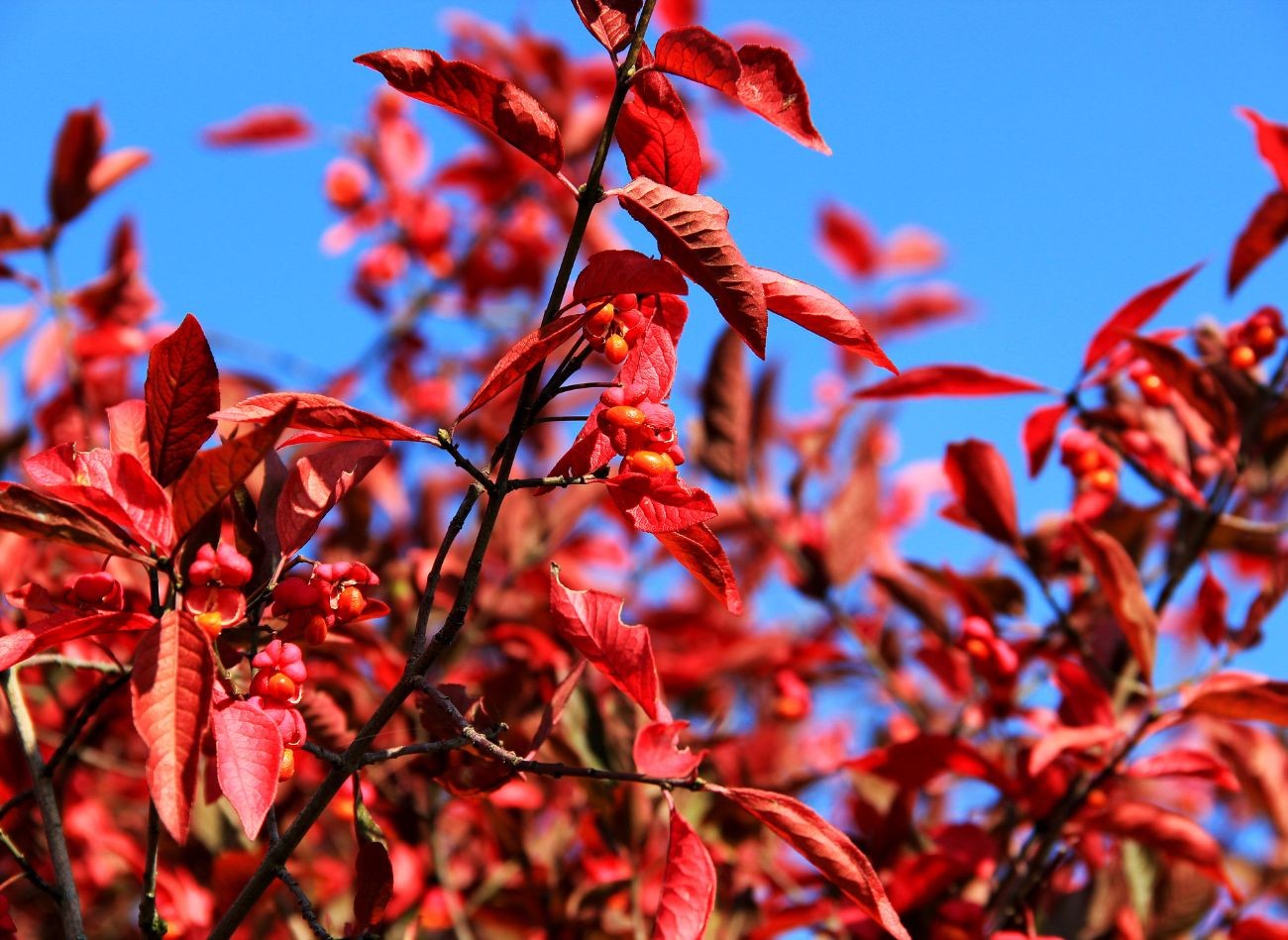 Spektakularne owoce trzmieliny pojawiają się na krzewie jesienią. Fot.kj2011/CanvaPro
