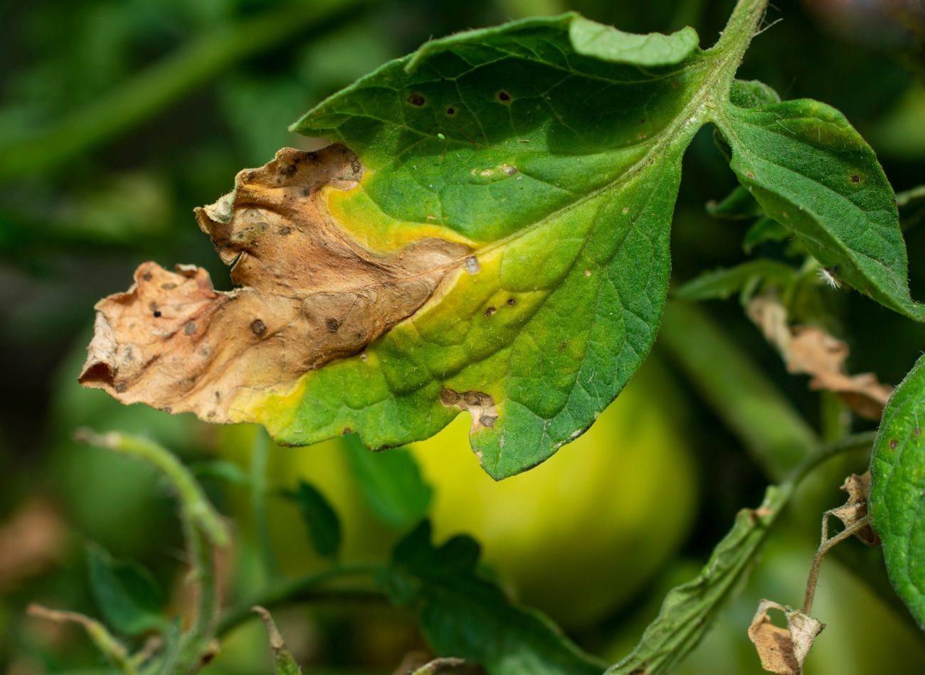 Bez wątpienia najgroźniejsza choroba pomidora to zaraza ziemniaczana pomidora. W sprzyjających warunkach potrafi w ciągu kilku dni zniszczyć całe plantacje. Objawia się brunatnymi, szybko powiększającymi się plamami na liściach, łodygach i owocach. Na dolnej stronie liści można zaobserwować delikatny, biały nalot, czyli zarodniki grzyba.