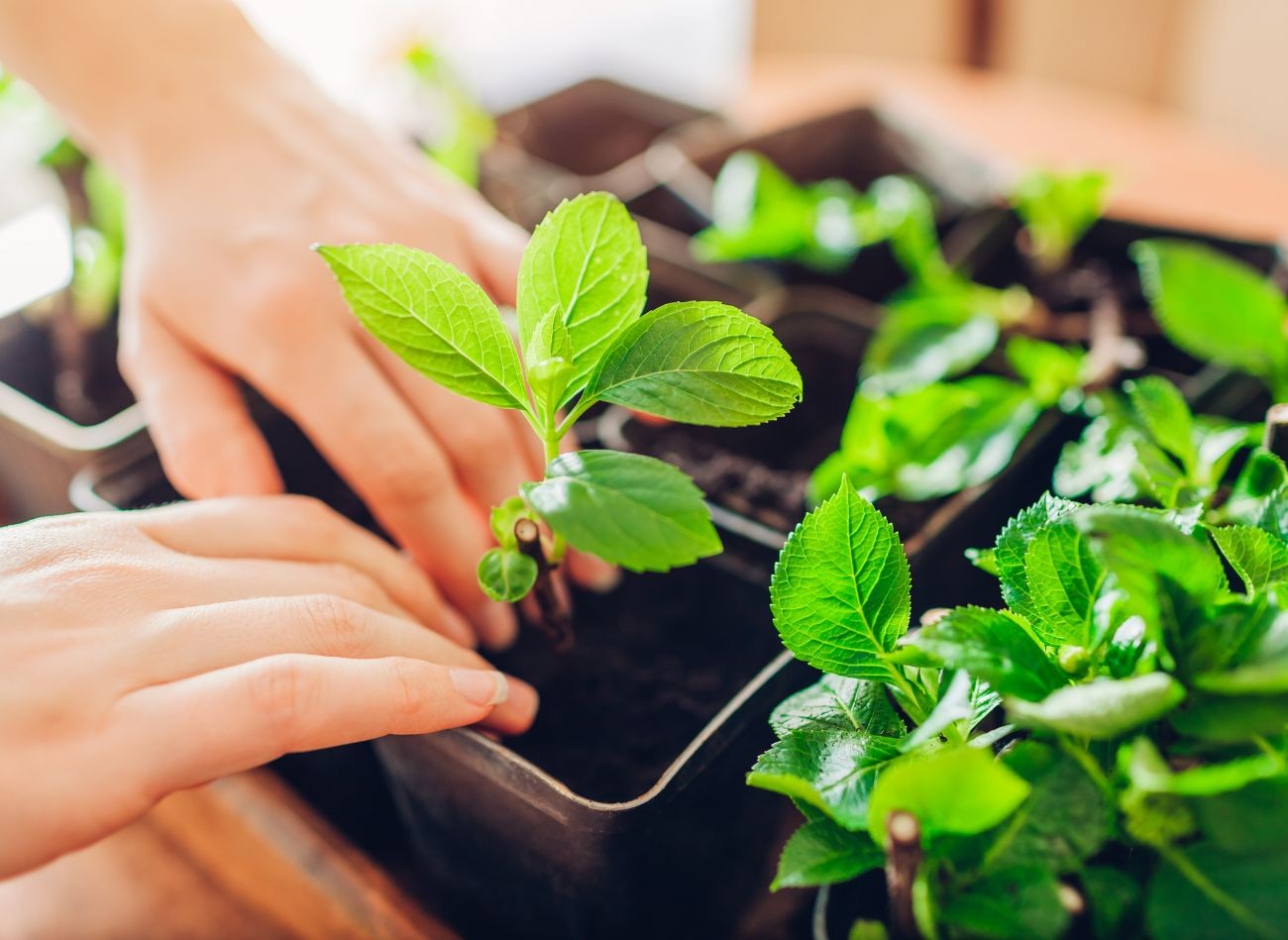 Pojemniki na sadzonki hortensji najlepiej jest wypełnić mieszanką torfu i piasku w proporcjach 2:1. Fot. Maryviolet/CanvaPro